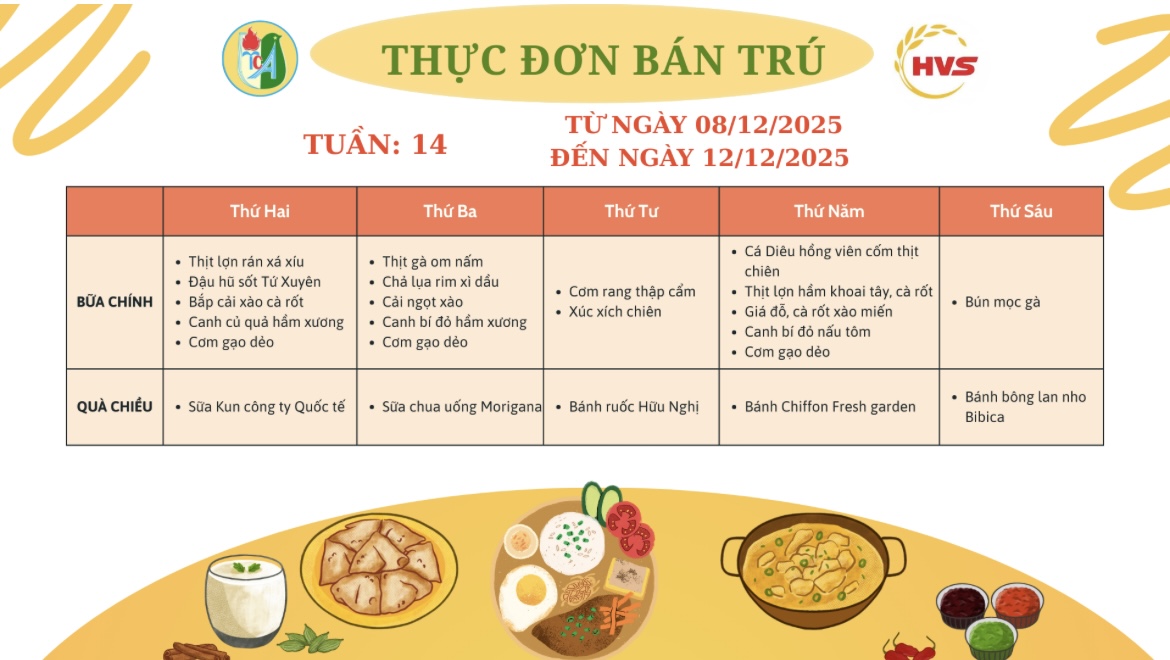 Thực đơn bán trú tuần 14 (NH 2025 - 2026)