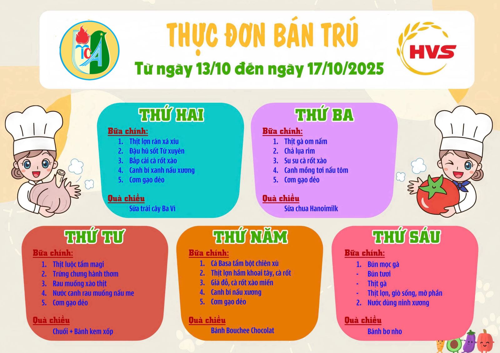 Thực đơn bán trú tuần 10 (NH 2025 - 2026)