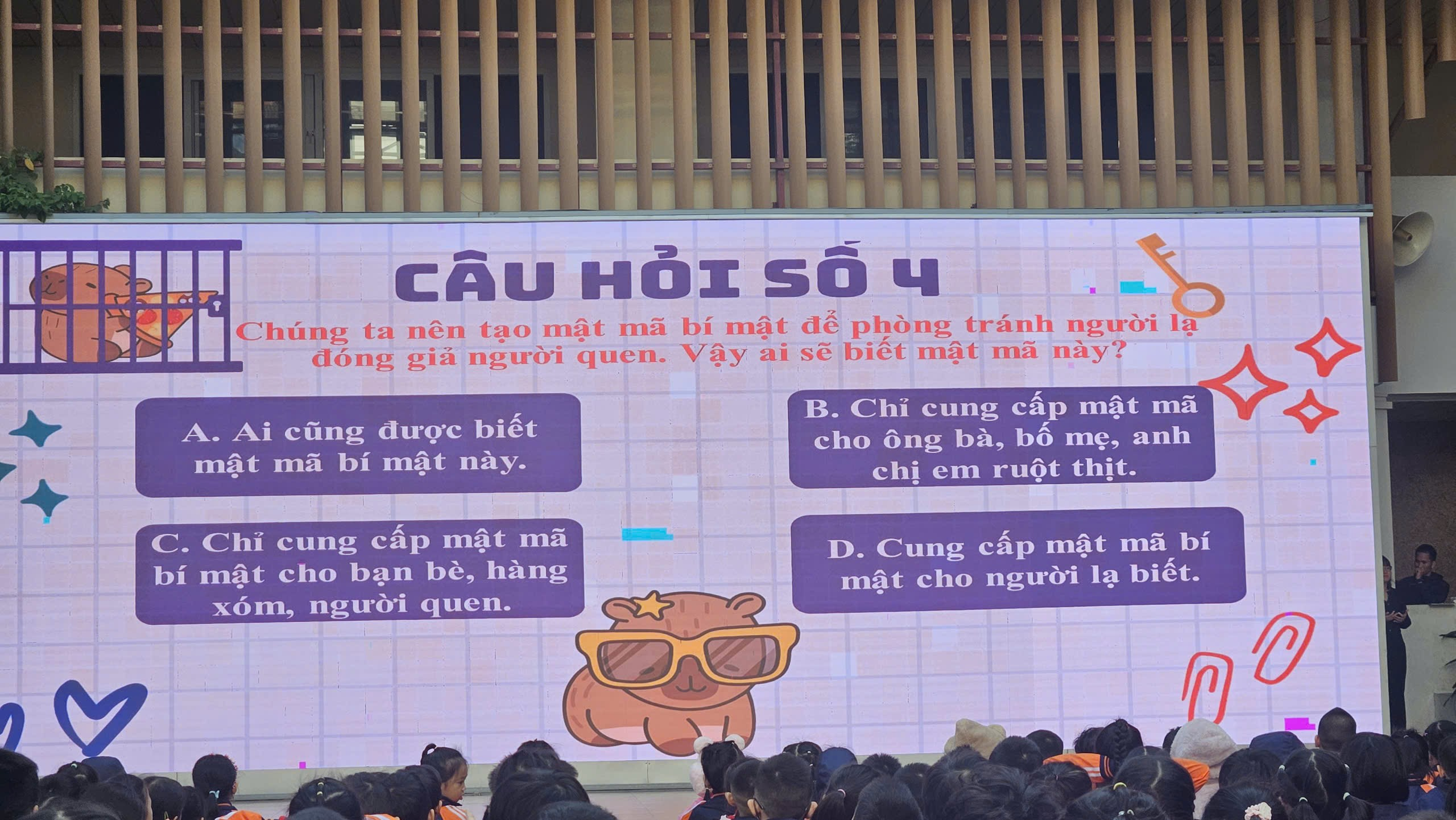 Trong chương trình, các em học sinh được tìm hiểu các tình huống thường gặp khi tiếp xúc với người lạ, học cách giữ khoảng cách tối thiểu, nhận biết nguy cơ, cũng như cách xử lý khi cảm thấy không an toàn. Bằng hình ảnh minh họa sinh động, tình huống thực tế và trò chơi vui nhộn đã giúp các em học sinh ghi nhớ kiến thức một cách tự nhiên và hiệu quả.
