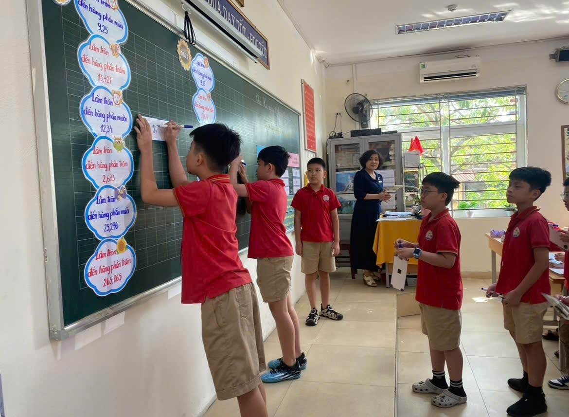 Học sinh lớp 5A2 tham gia trò chơi trong giờ học Toán