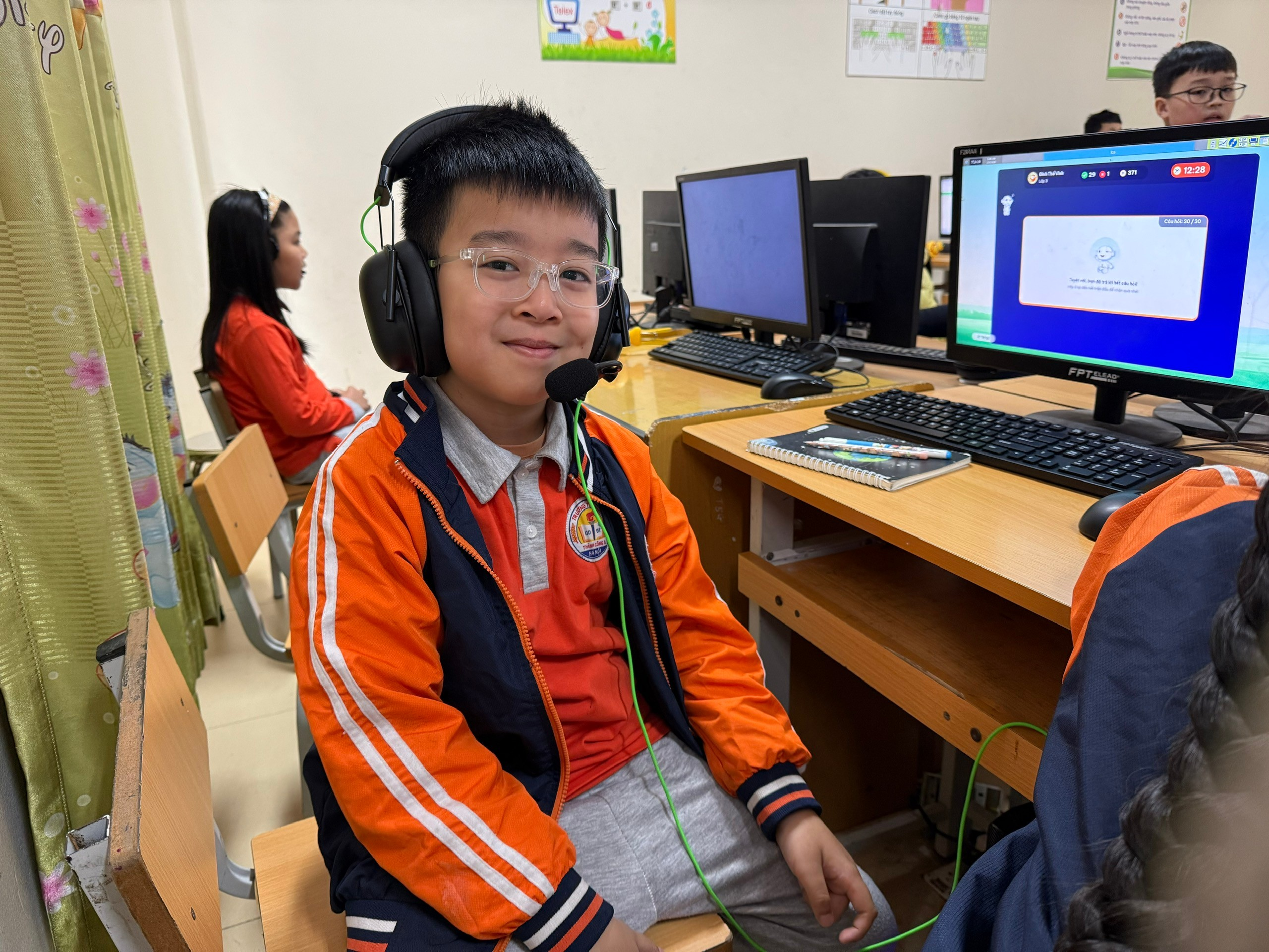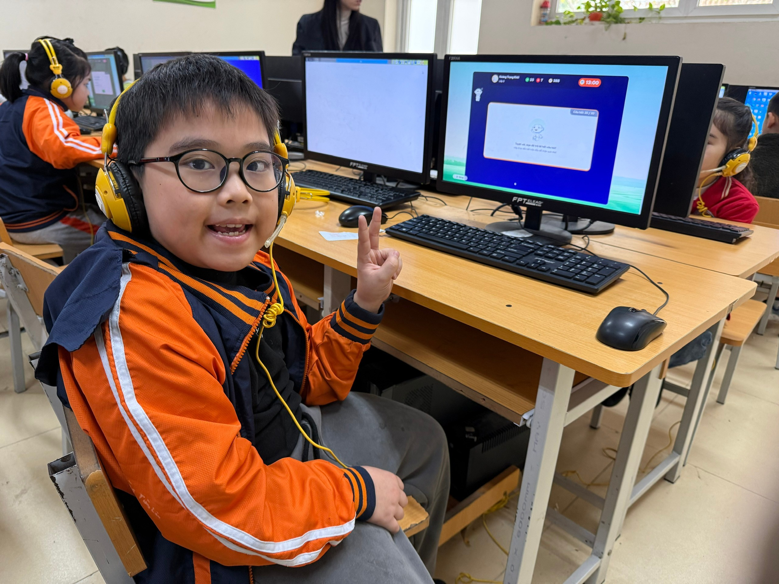 Trong suốt quá trình dự thi, các em học sinh khối 3 đã thể hiện tinh thần học tập nghiêm túc, tập trung cao độ và tuân thủ đúng quy chế thi. Nhiều em mạnh dạn, tự tin khi tiếp cận máy tính, chủ động đọc – hiểu yêu cầu đề bài và hoàn thành bài thi trong thời gian quy định. Điều đó cho thấy sự tiến bộ rõ rệt của các em trong việc ứng dụng công nghệ thông tin vào học tập cũng như trong quá trình học môn Tiếng Anh.
