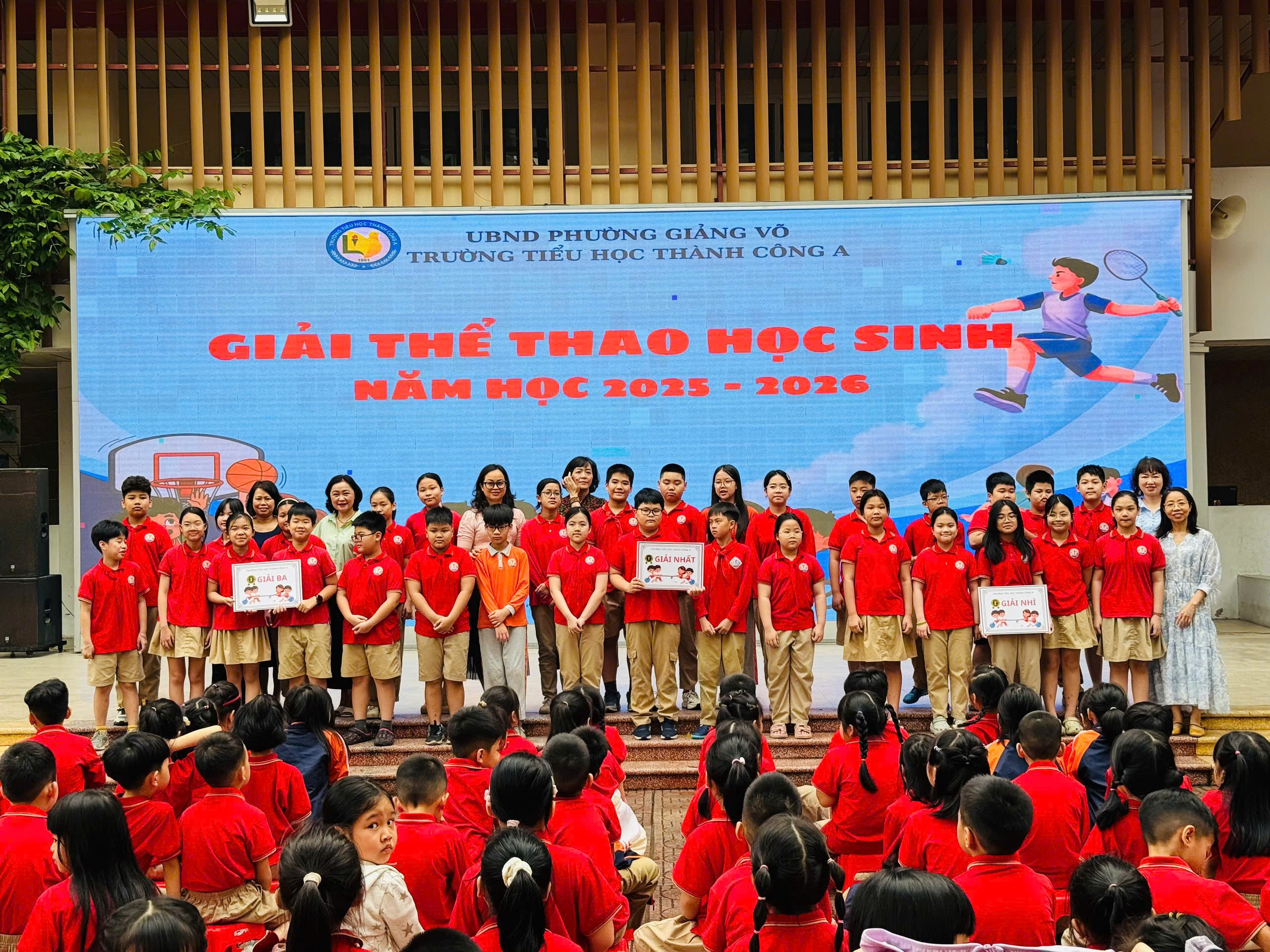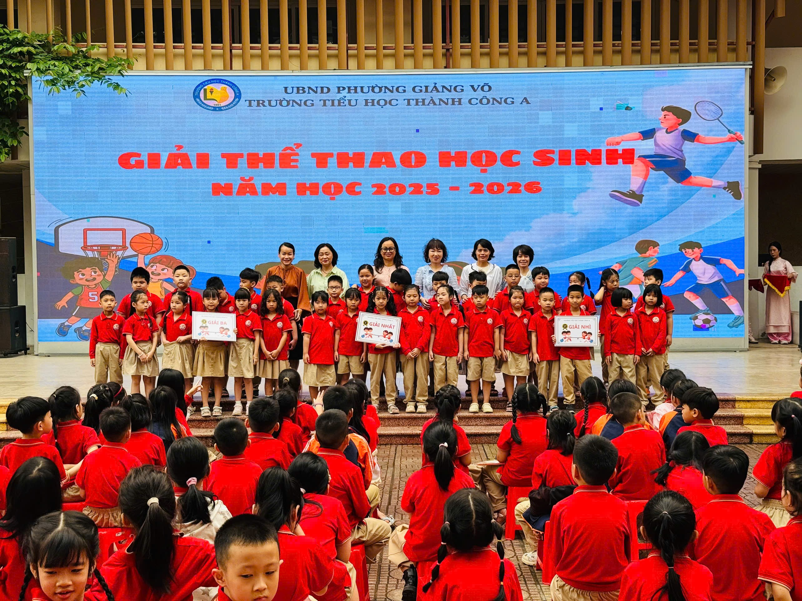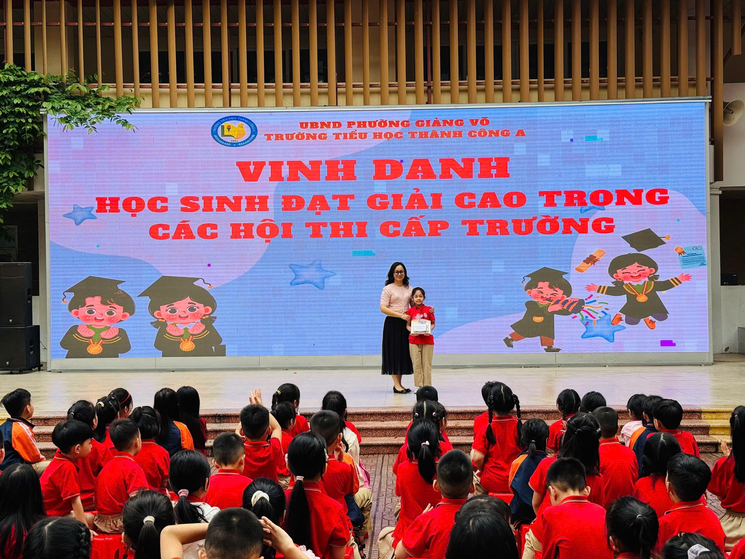 Trong không khí thi đua sôi nổi của năm học 2025 - 2026, Trường Tiểu học Thành Công A đã tổ chức trao giải cho các hội thi cấp trường ngay sau khi các nội dung tranh tài kết thúc, nhằm kịp thời động viên, khích lệ tinh thần của các em học sinh. Các giải thưởng được trao ở nhiều lĩnh vực như vẽ, thể dục thể thao…, ghi nhận sự nỗ lực, sáng tạo và tinh thần tích cực tham gia của các tập thể, cá nhân. Hoạt động không chỉ tạo động lực thúc đẩy phong trào thi đua trong nhà trường mà còn góp phần nâng cao chất lượng giáo dục toàn diện, xây dựng môi trường học tập năng động, hiệu quả.