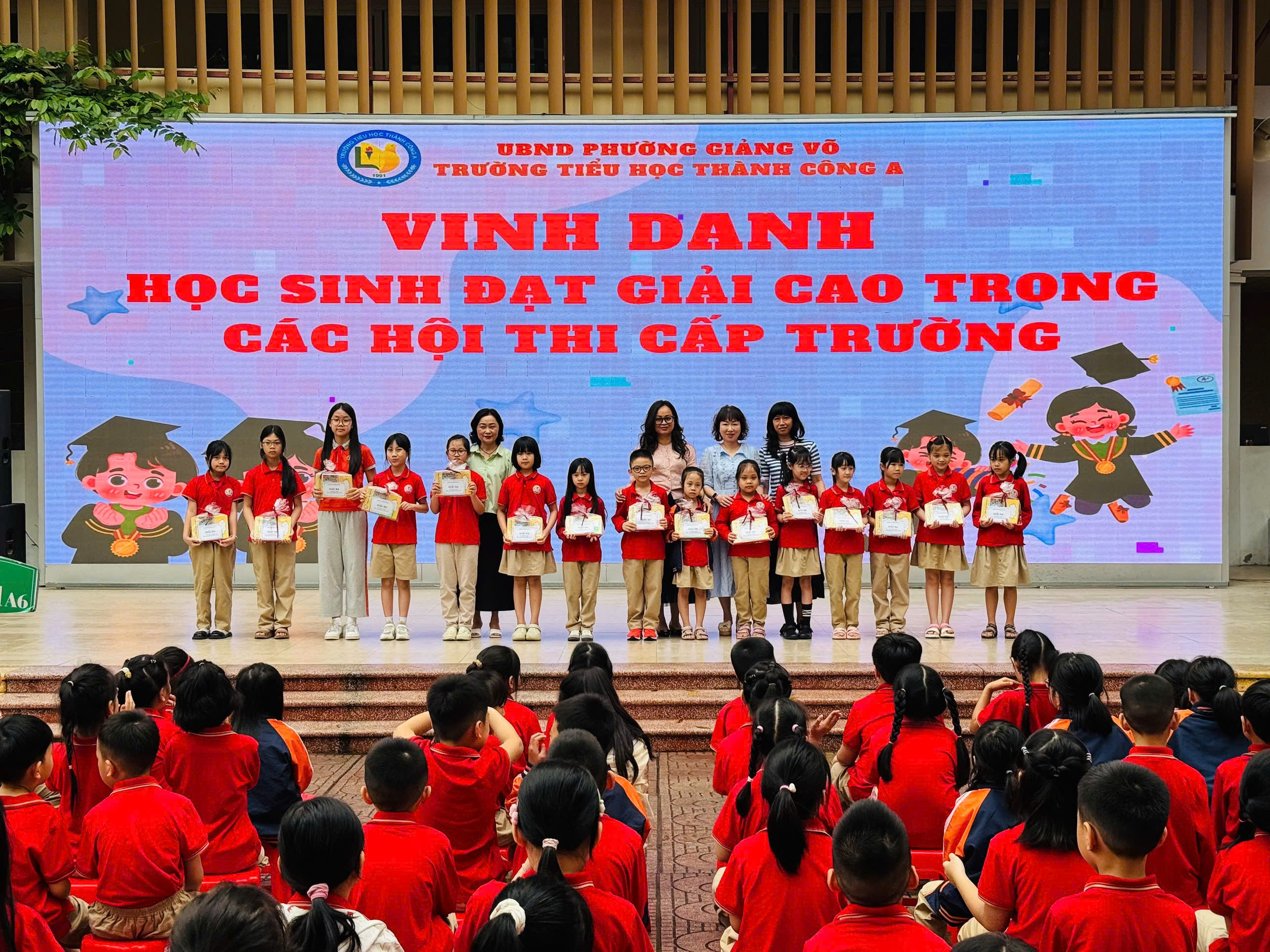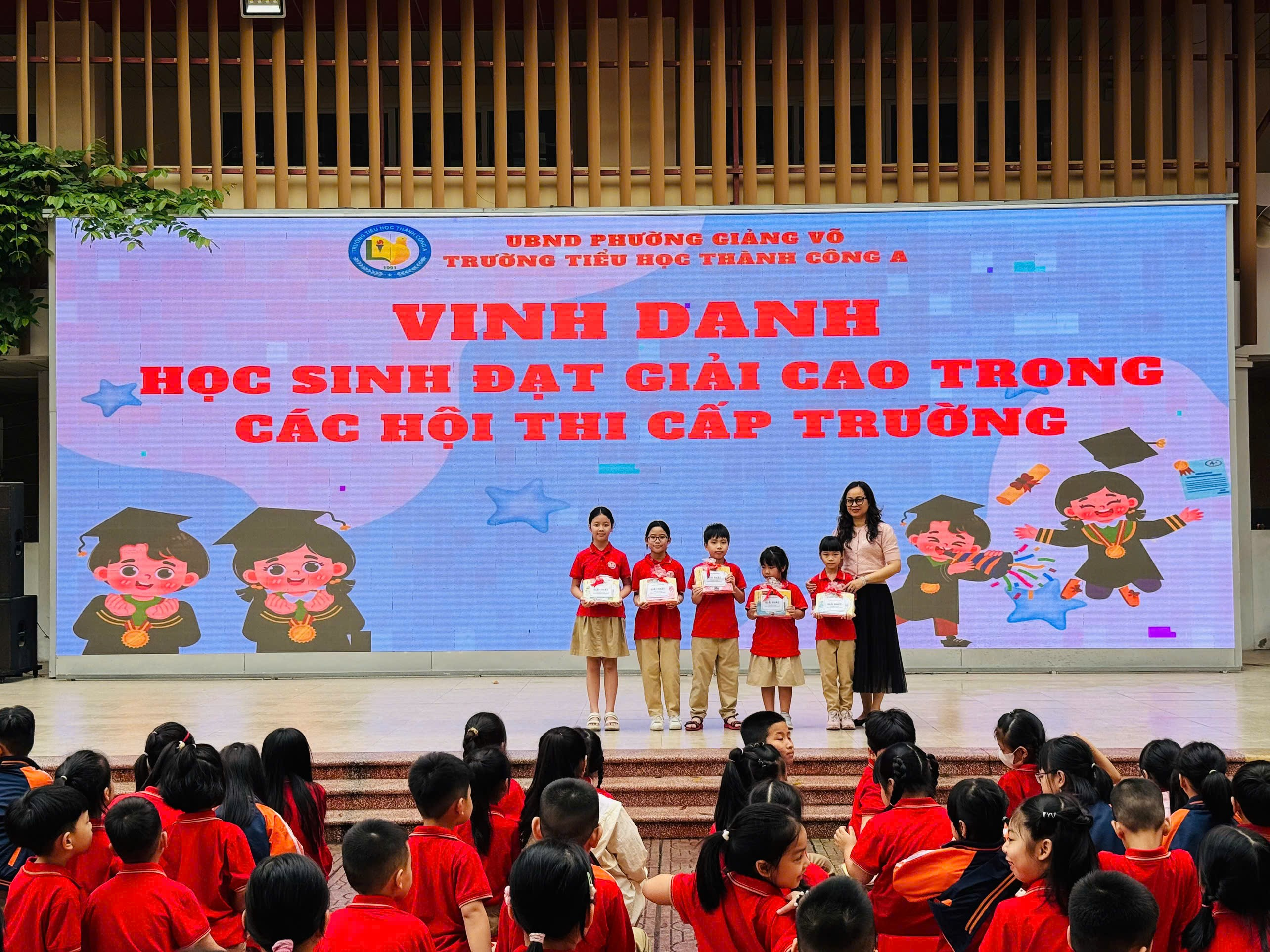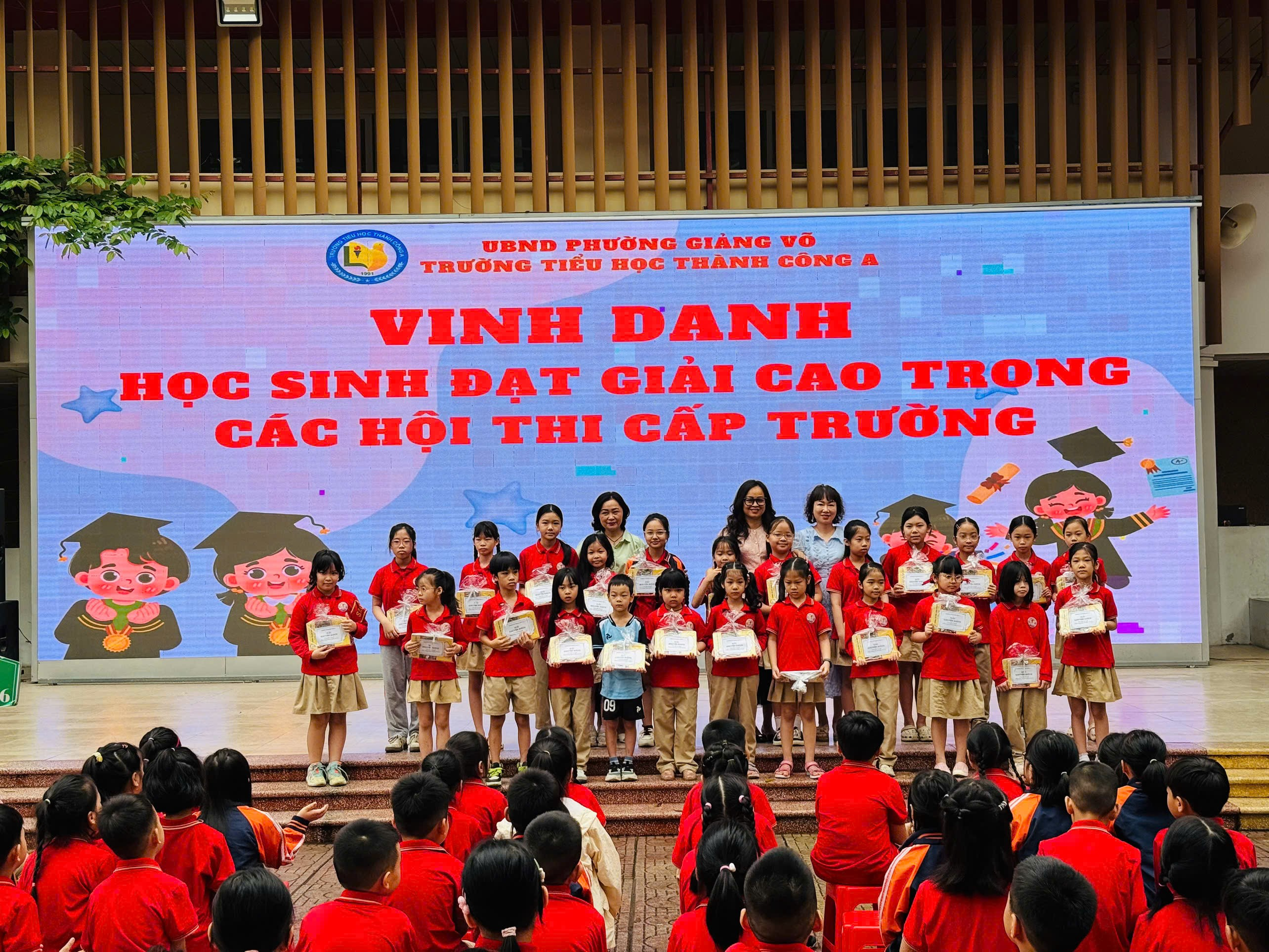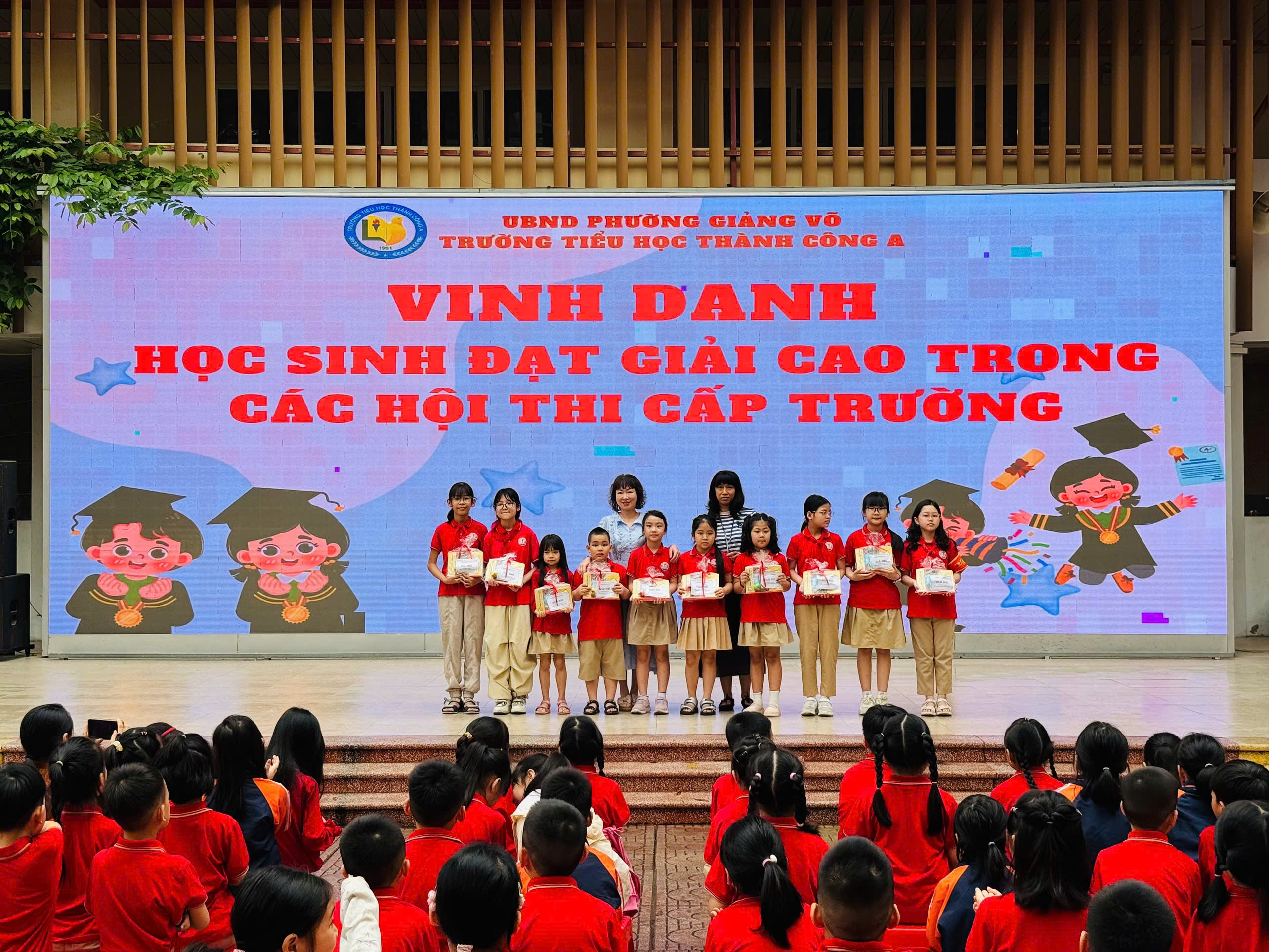Trong không khí thi đua sôi nổi của năm học 2025 - 2026, Trường Tiểu học Thành Công A đã tổ chức trao giải cho các hội thi cấp trường ngay sau khi các nội dung tranh tài kết thúc, nhằm kịp thời động viên, khích lệ tinh thần của các em học sinh. Các giải thưởng được trao ở nhiều lĩnh vực như vẽ, thể dục thể thao…, ghi nhận sự nỗ lực, sáng tạo và tinh thần tích cực tham gia của các tập thể, cá nhân. Hoạt động không chỉ tạo động lực thúc đẩy phong trào thi đua trong nhà trường mà còn góp phần nâng cao chất lượng giáo dục toàn diện, xây dựng môi trường học tập năng động, hiệu quả.