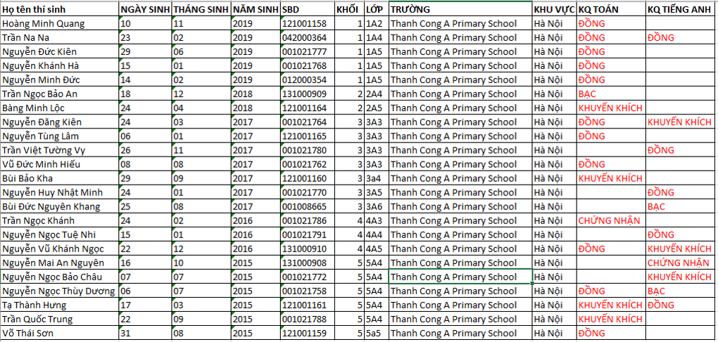 Một lần nữa, Trường TH Thành Công A xin chúc mừng các thí sinh đạt thành tích cao tại Vòng 1. Chúc các con tiếp tục phát huy tài năng và đạt được nhiều thành tích rực rỡ hơn trong tương lai!