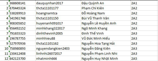 Danh sách học sinh đủ điều kiện thi sân chơi Toán học Việt Nam (Trạng Nguyên Toán) - cấp trường năm học 2025-2026