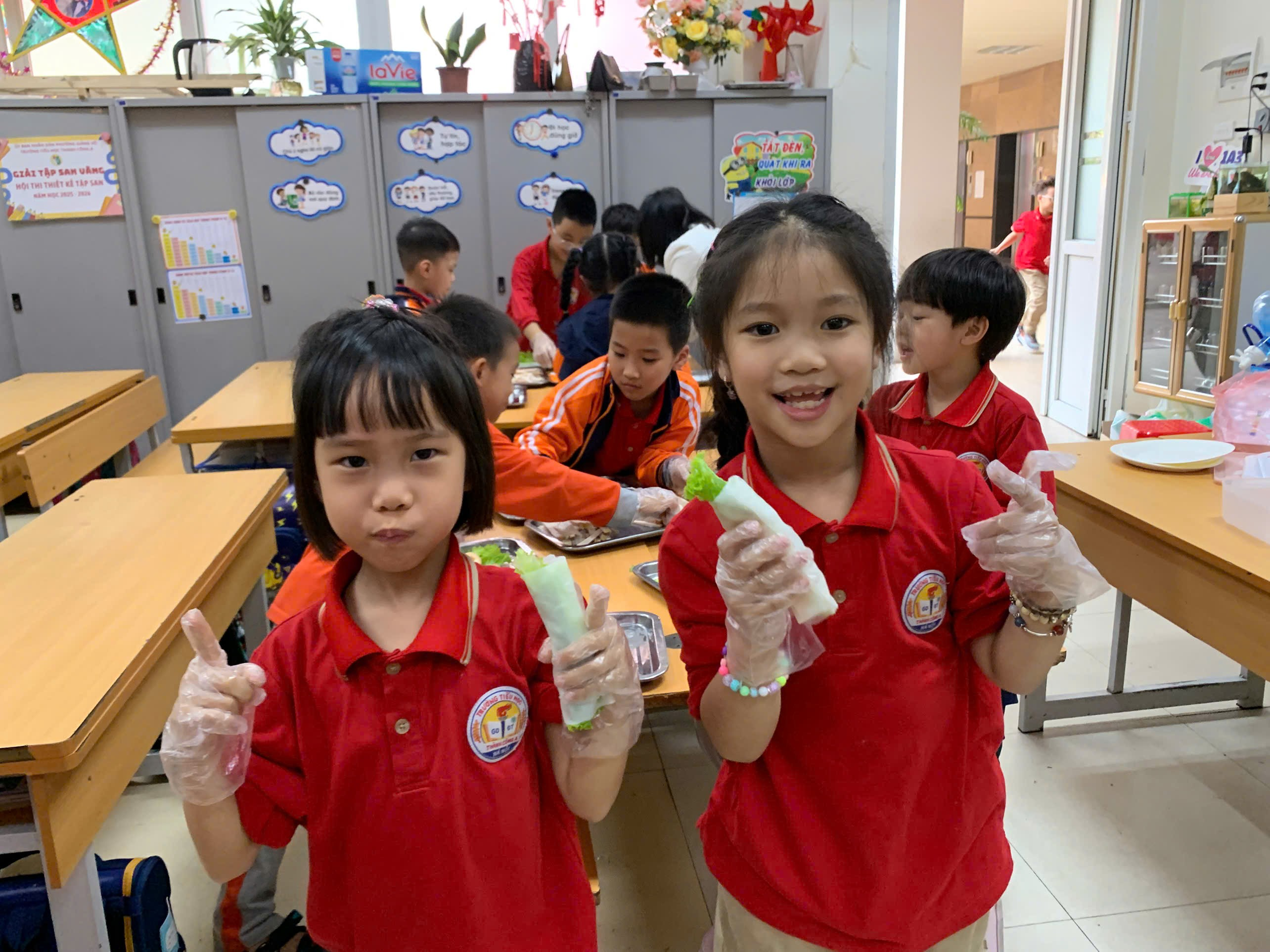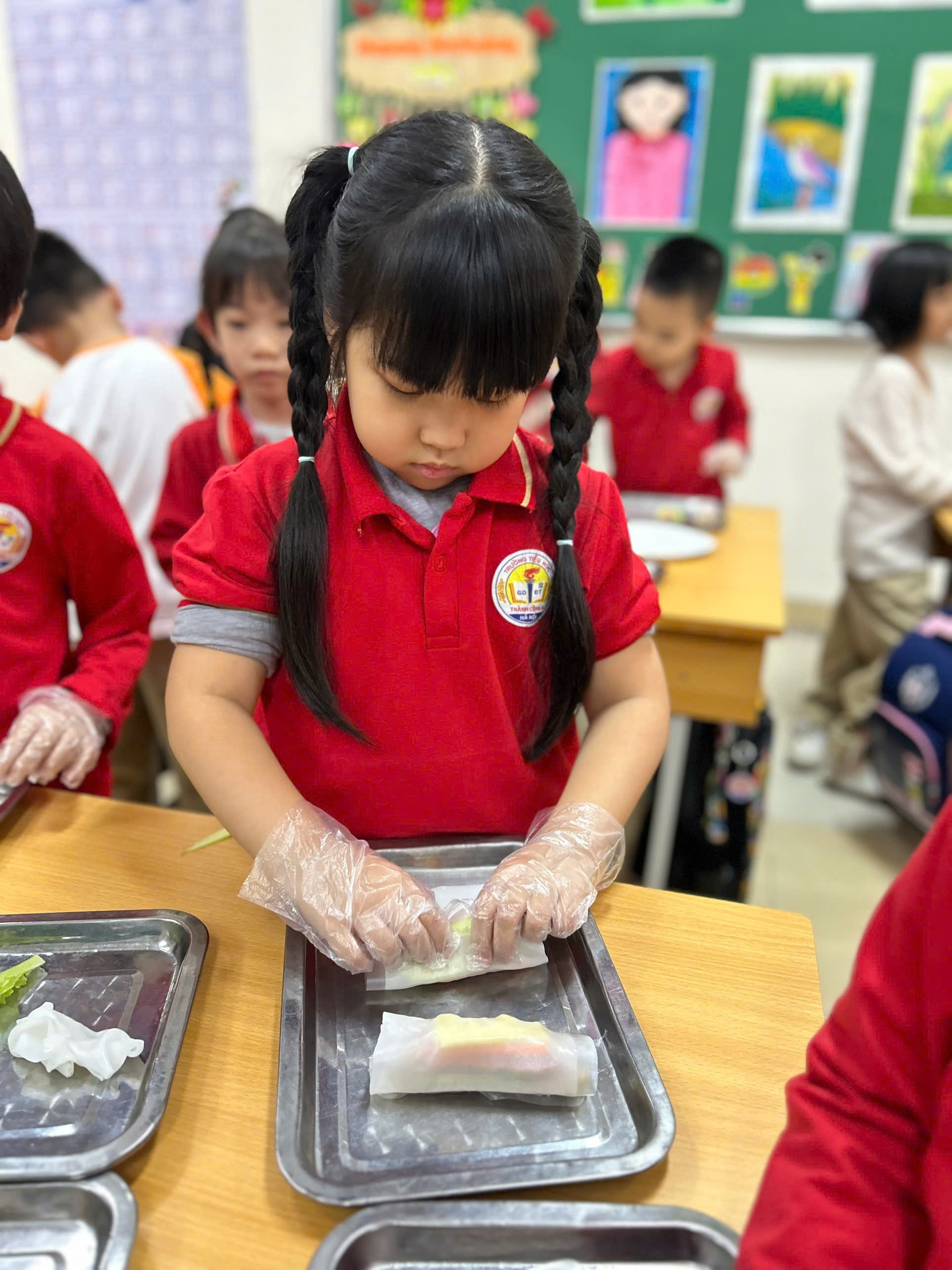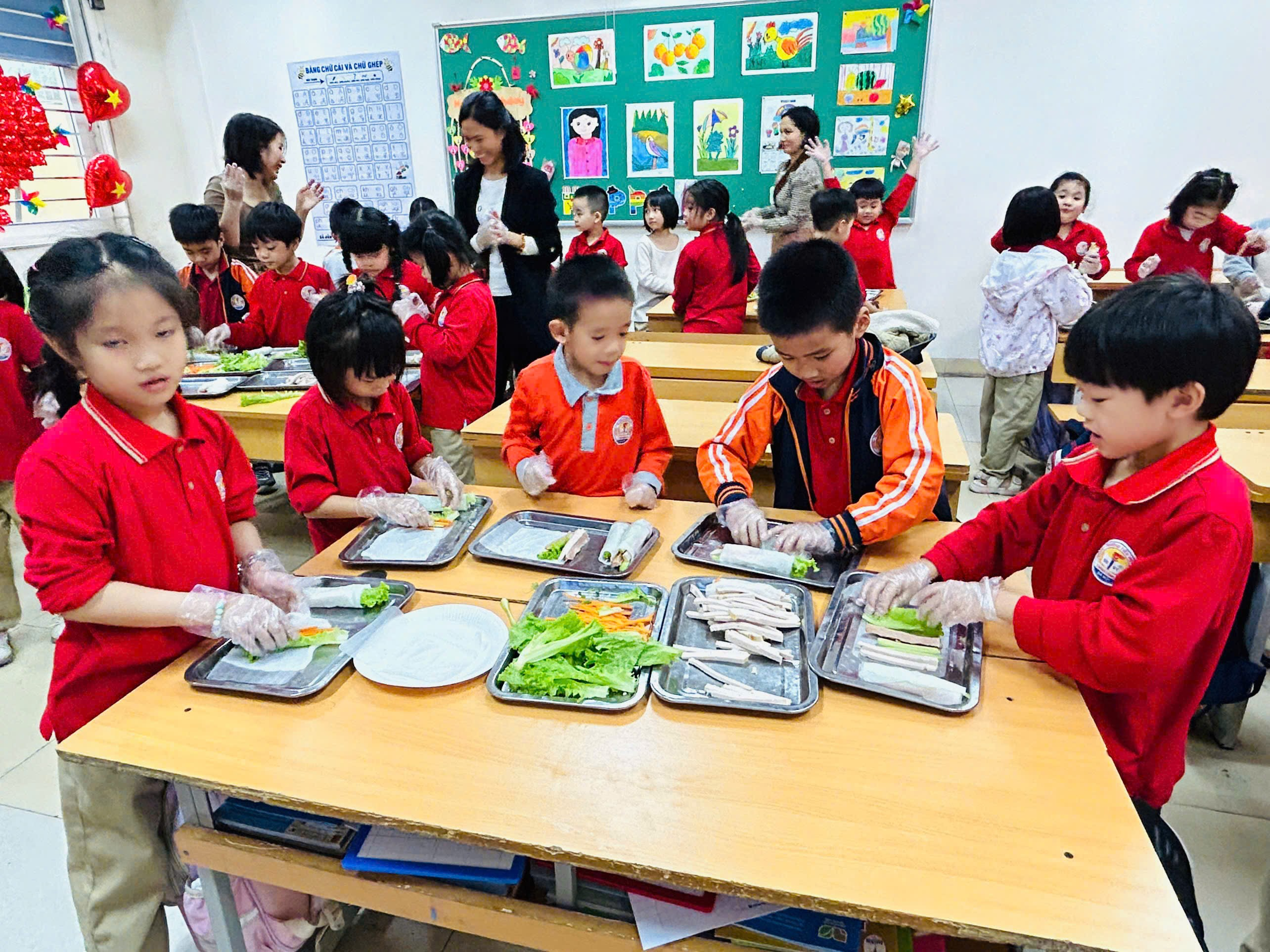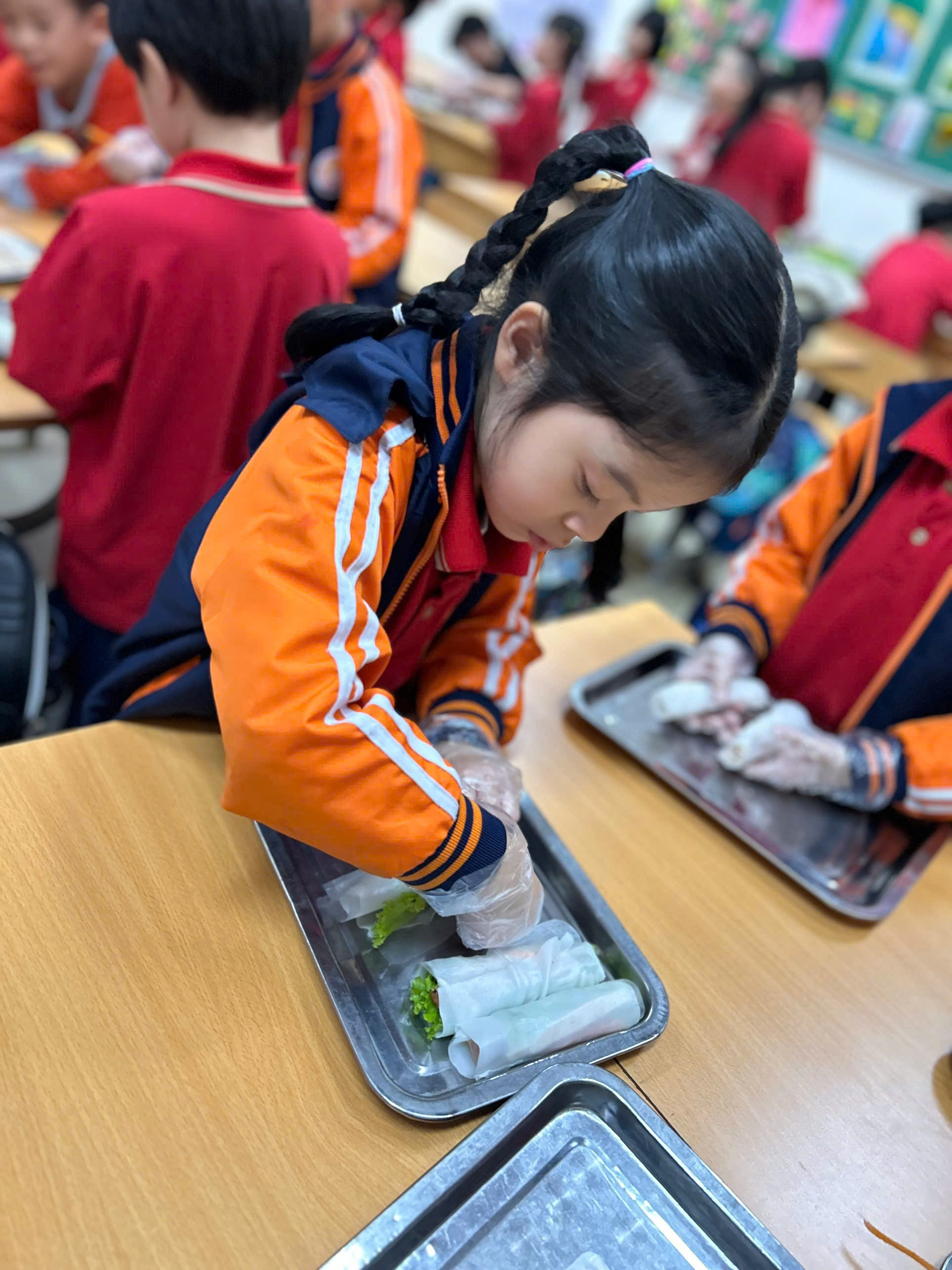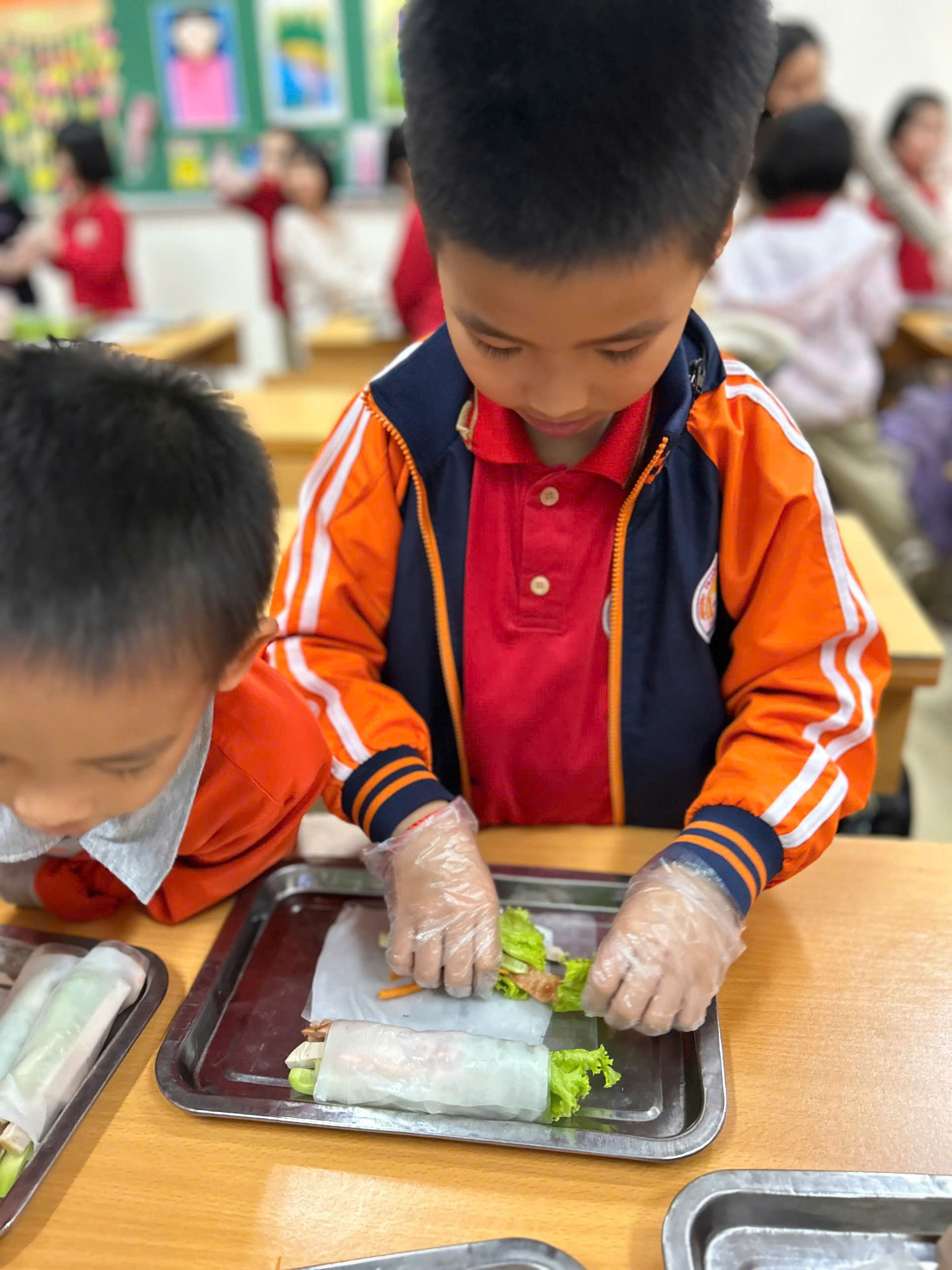 Không giấu được sự thích thú, nhiều em tỏ ra vô cùng hào hứng khi lần đầu tiên được “làm đầu bếp nhí”. Những ánh mắt chăm chú, đôi tay còn vụng về nhưng đầy cố gắng cùng những nụ cười rạng rỡ đã làm cho lớp học trở nên sinh động hơn bao giờ hết. Sau khi hoàn thành, các em cùng nhau thưởng thức những cuốn phở do chính mình làm ra, niềm vui hiện rõ trên từng gương mặt.