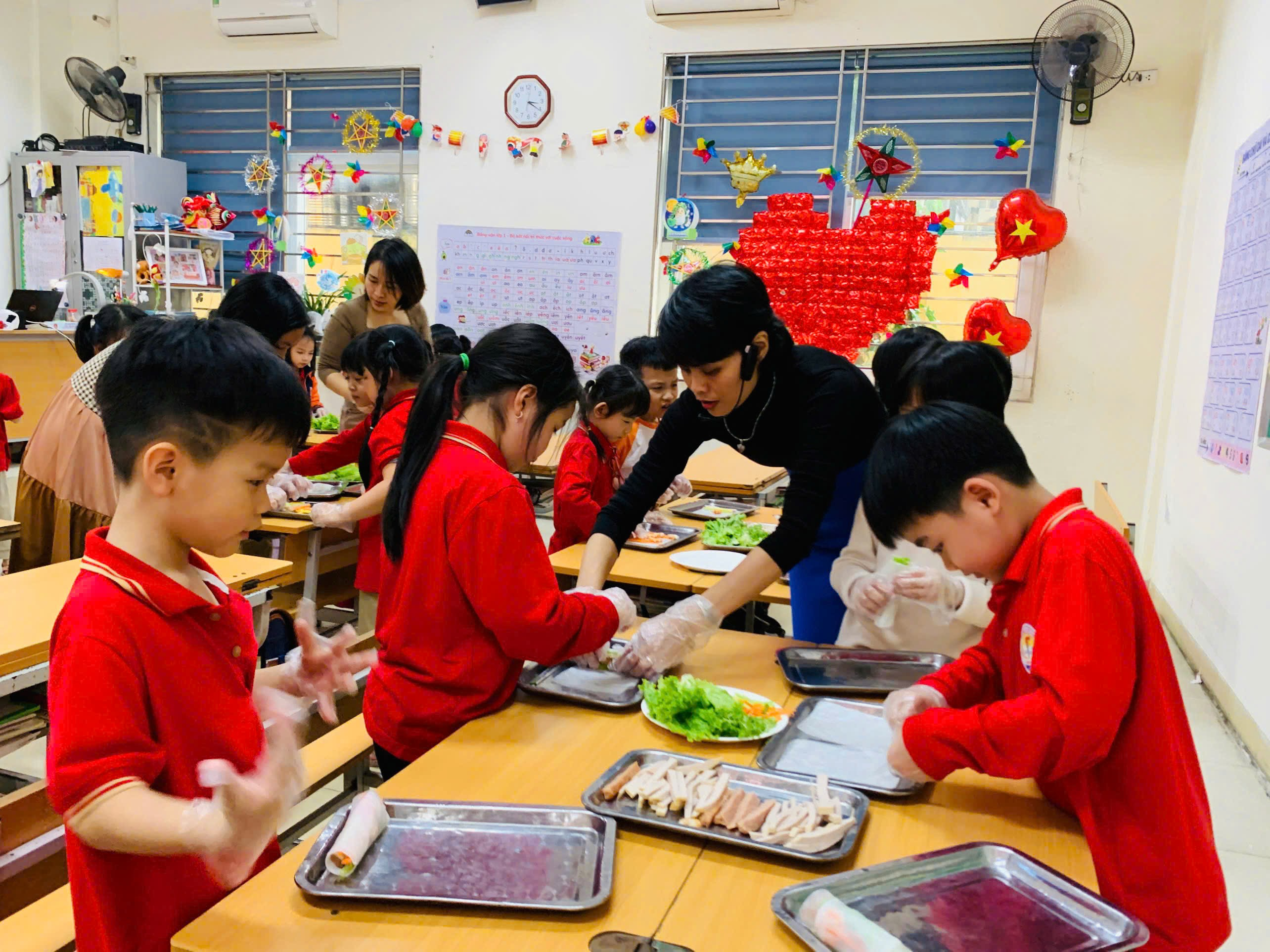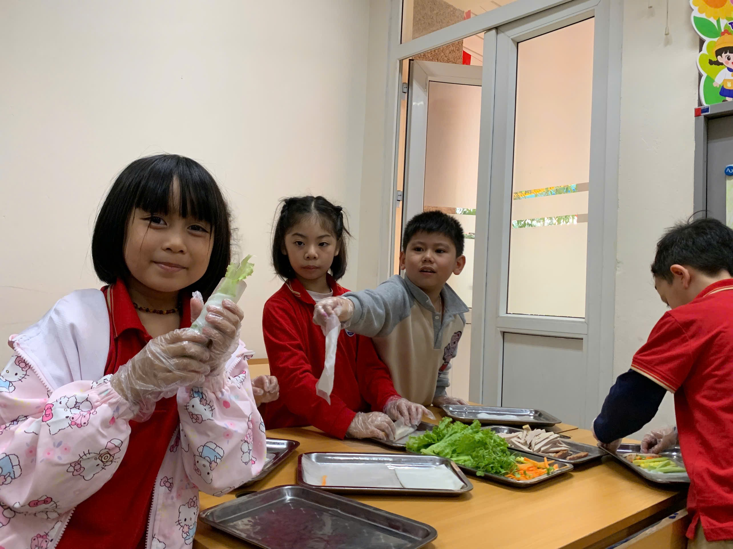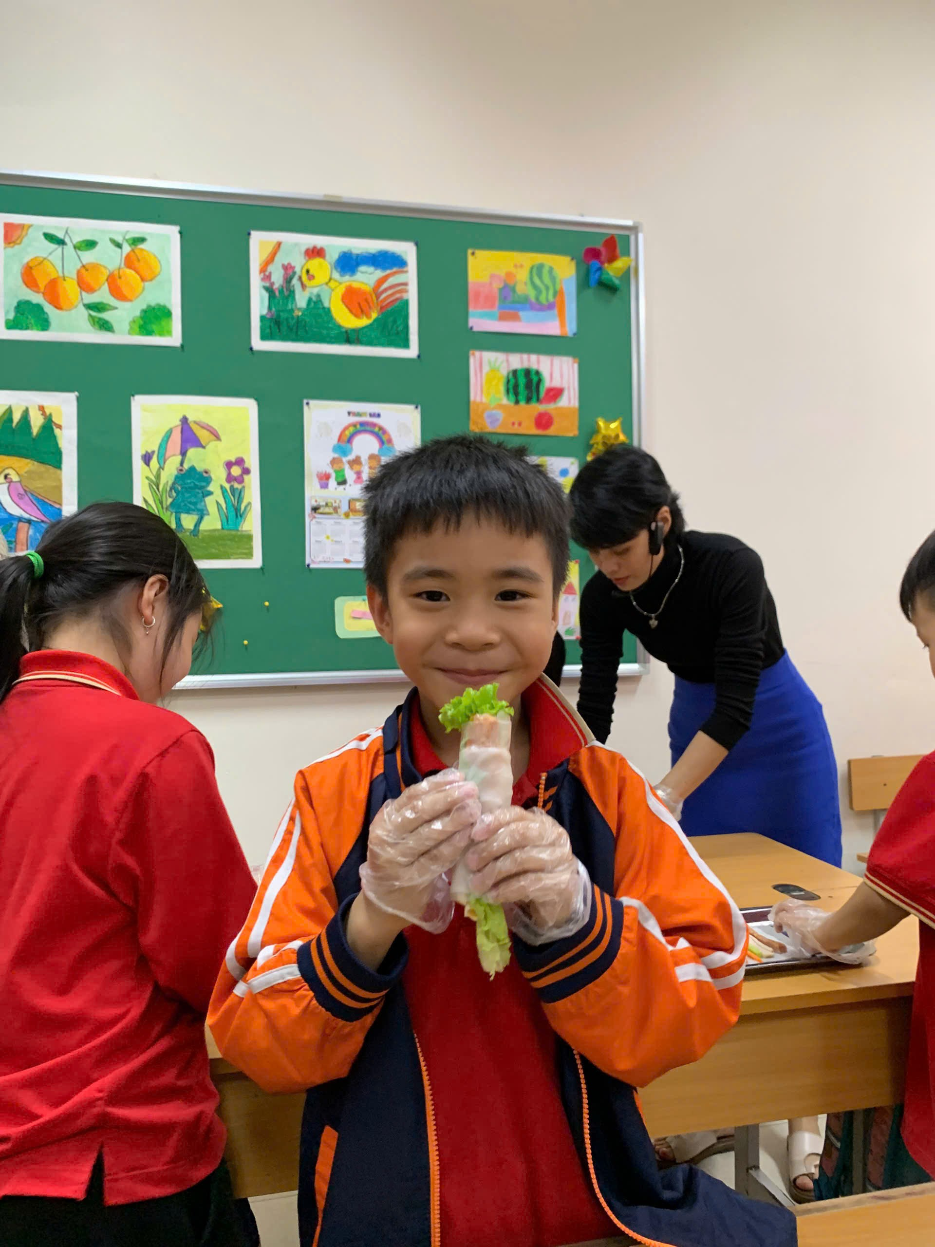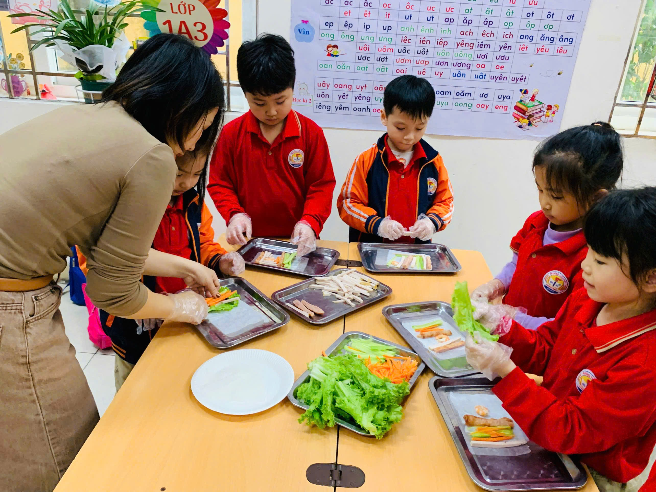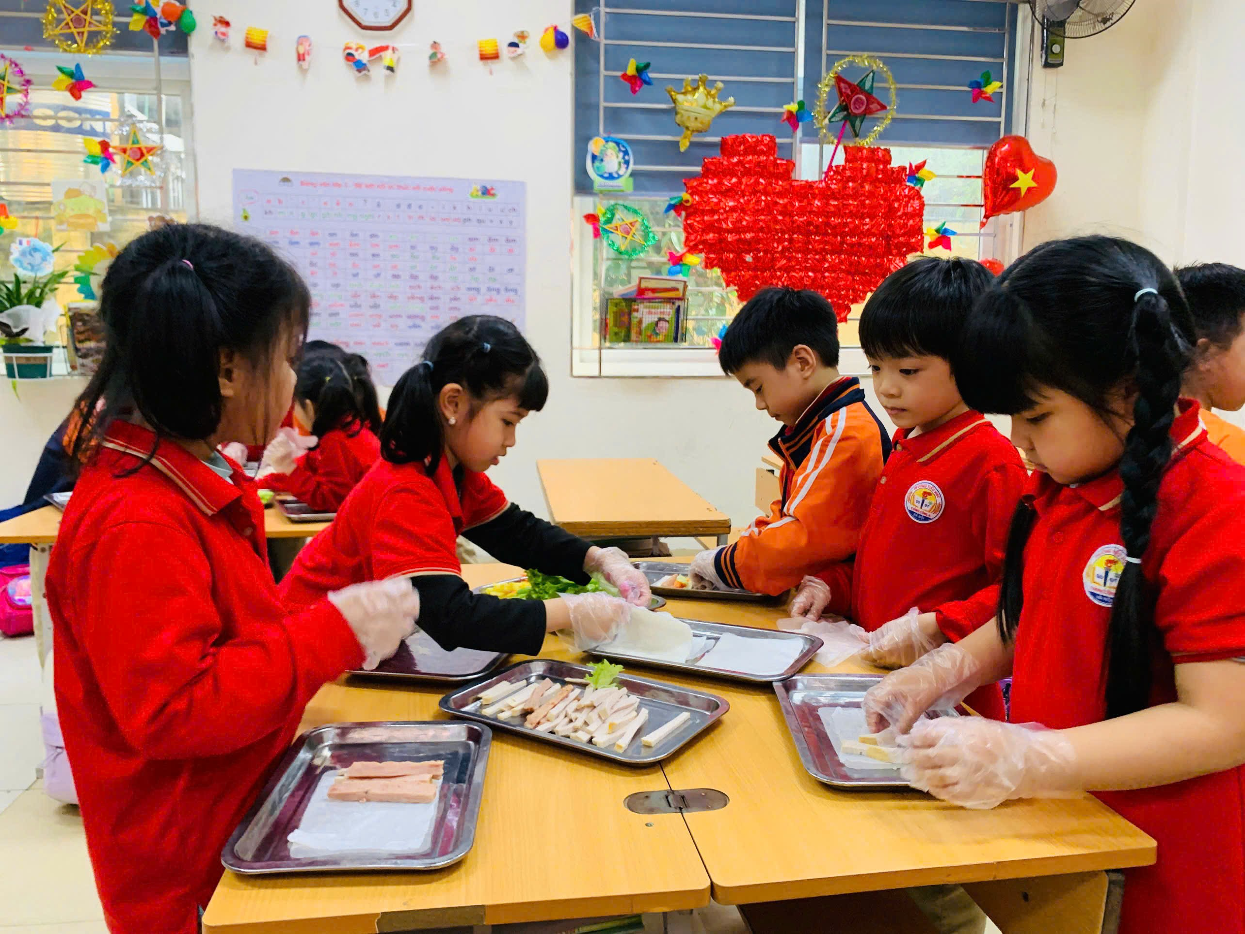 Không giấu được sự thích thú, nhiều em tỏ ra vô cùng hào hứng khi lần đầu tiên được “làm đầu bếp nhí”. Những ánh mắt chăm chú, đôi tay còn vụng về nhưng đầy cố gắng cùng những nụ cười rạng rỡ đã làm cho lớp học trở nên sinh động hơn bao giờ hết. Sau khi hoàn thành, các em cùng nhau thưởng thức những cuốn phở do chính mình làm ra, niềm vui hiện rõ trên từng gương mặt.