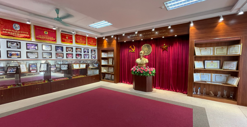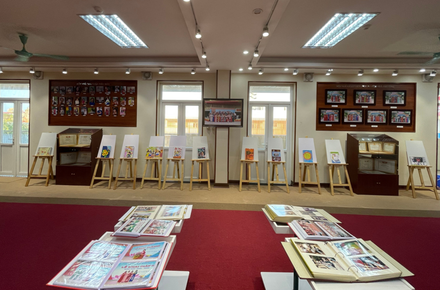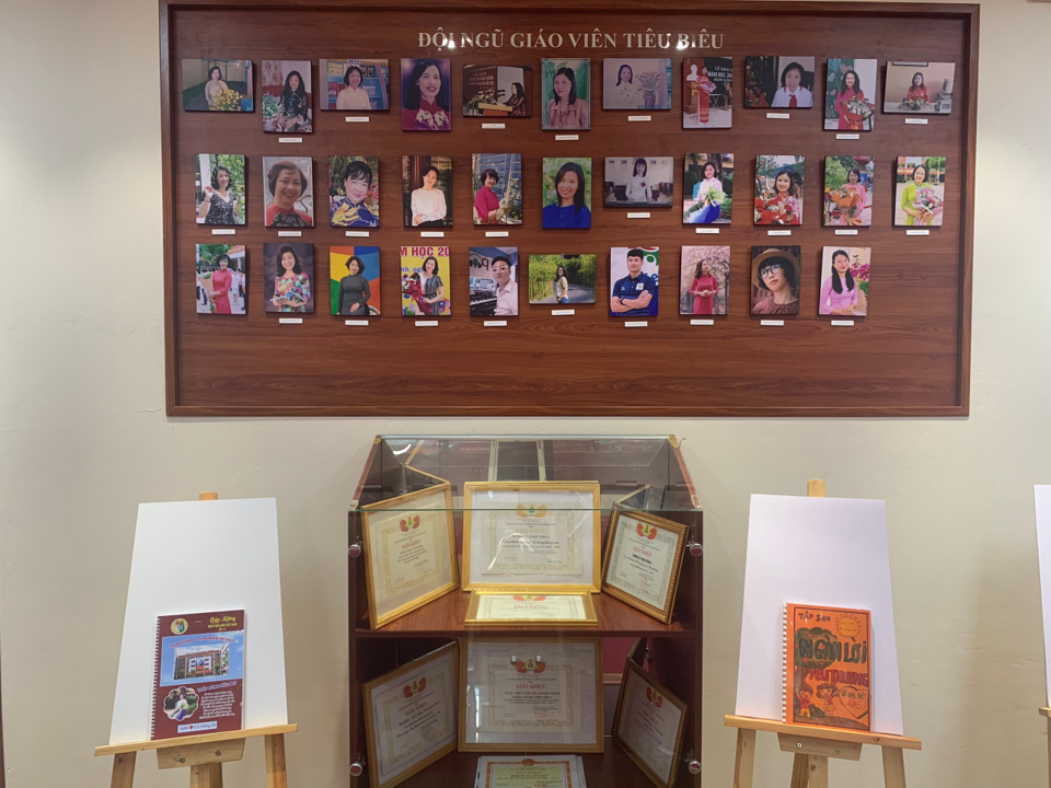 Giữa gian phòng tuy nhỏ nhắn nhưng rất khang trang, ấm áp là bức tượng Bác Hồ kính yêu được đặt ngay ngắn và trang trọng. Ấn tượng nhất có lẽ phải kể đến là những chùm hình ảnh về các hoạt động của nhà trường trải qua hơn 30 năm xây dựng và phát triển. Từng gương mặt, tên tuổi của các thầy cô và các em học sinh là biểu trưng cho những tấm gương và sự cố gắng, nỗ lực không ngừng để đóng góp vào thành tích chung của nhà trường được treo trang trọng, ngay ngắn trong căn phòng.