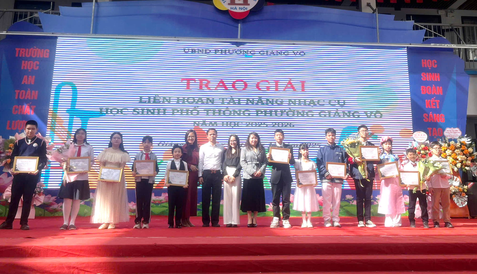 Giải Nhất và vinh dự đại diện phường Giảng Võ đã thuộc về em Nguyễn Duy Anh, học sinh trường Tiểu học Thành Công A. Em sẽ tham dự Liên hoan tài năng nhạc cụ học sinh phổ thông thành phố Hà Nội lần thứ nhất, năm học 2025-2026.