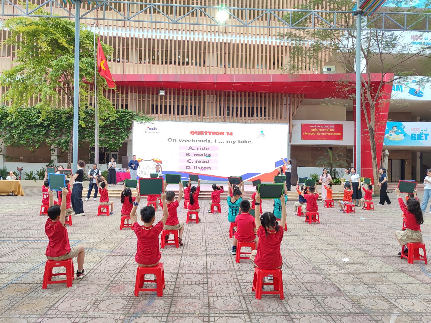 Trong không khí học tập hào hứng và tràn đầy năng lượng, cuộc thi Rung chuông vàng Tiếng Anh khối 2 do Trường Tiểu học Thành Công A phối hợp cùng Trung tâm Anh ngữ Dream House tổ chức đã diễn ra thành công, để lại nhiều ấn tượng tốt đẹp trong lòng thầy cô và các em học sinh. Đây không chỉ là một sân chơi trí tuệ bổ ích mà còn là cơ hội để các em thể hiện khả năng tiếng Anh, sự tự tin và bản lĩnh của mình.
