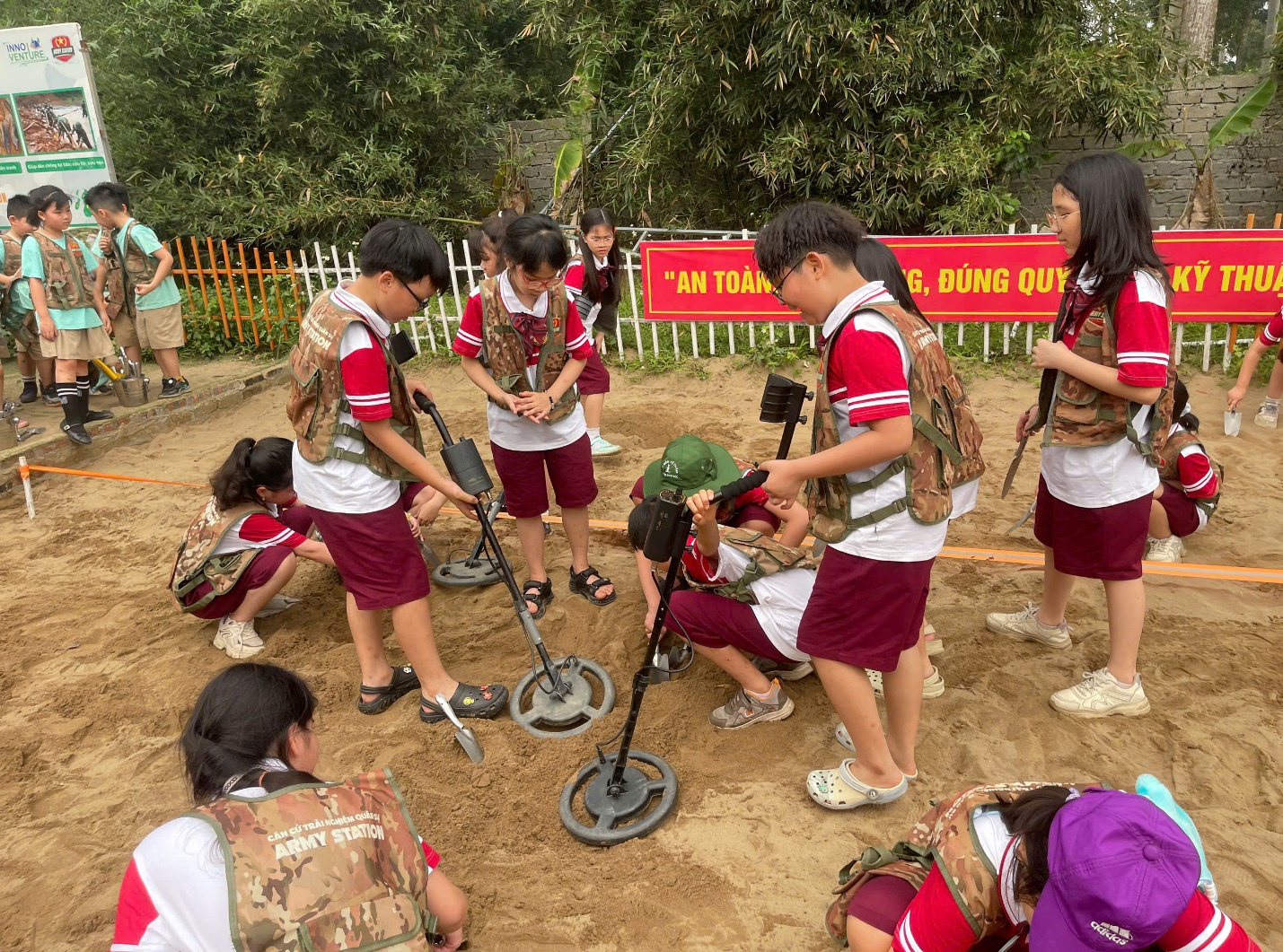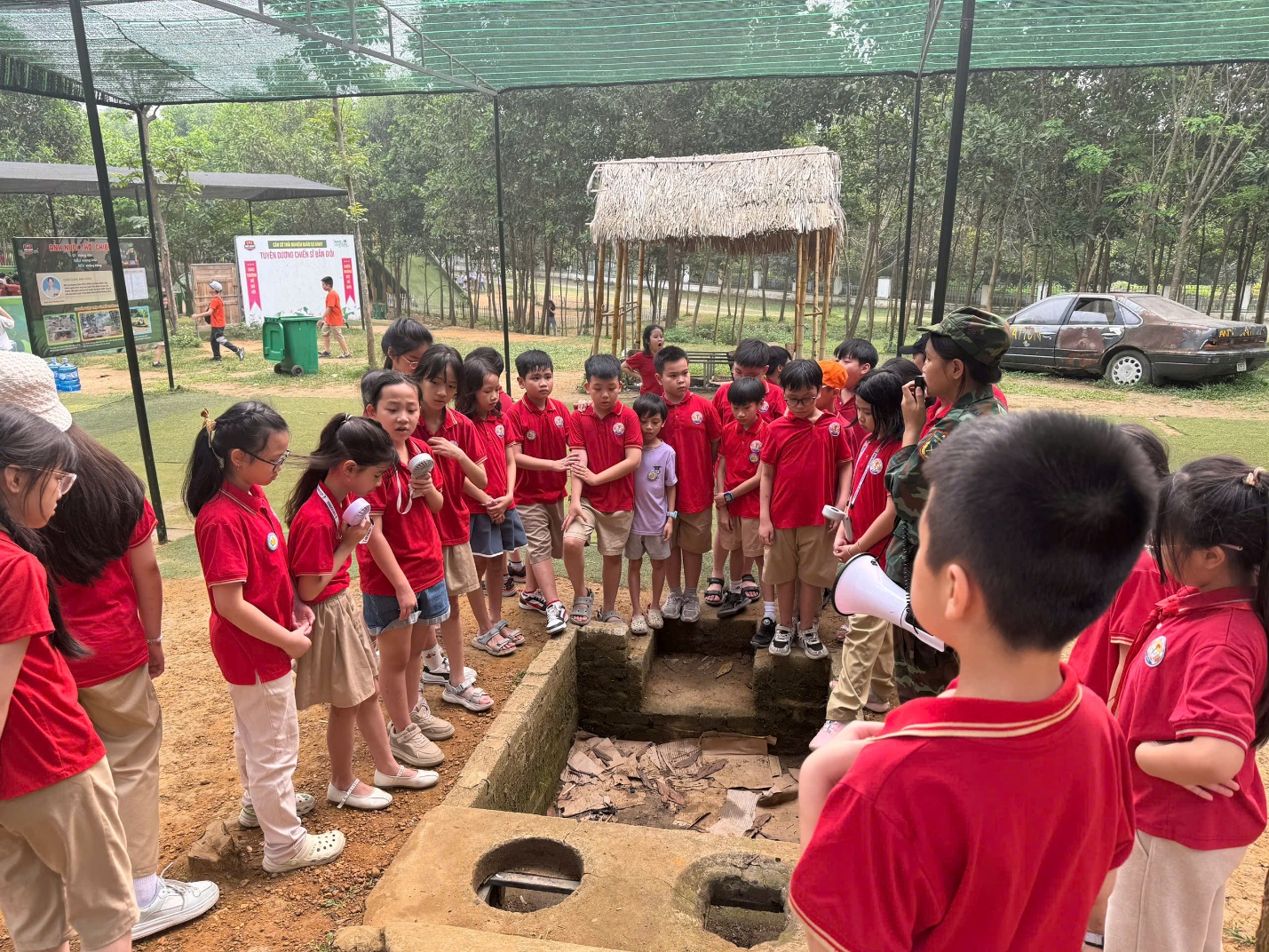 Ngay từ giây phút đầu tiên bước vào căn cứ, sự hào hứng đã hiện rõ trên từng khuôn mặt khi các con được khoác lên mình tinh thần của "Đội quân danh dự". Không còn là những tiết học trên lớp, các con thực sự bước vào một cuộc phiêu lưu đầy phấn khích. Những đôi mắt lấp lánh niềm vui khi lần đầu được khám phá mô hình tàu ngầm Kilo Hà Nội huyền thoại, hay cảm giác hồi hộp đầy tự hào khi cầm trên tay mô phỏng súng chống tăng Bazooka để phá hủy lô cốt. Từng tiếng reo hò vang dậy khi một mục tiêu bị chinh phục, đó không chỉ là trò chơi, mà là khoảnh khắc các con thấy mình mạnh mẽ và quả cảm hơn bao giờ hết.