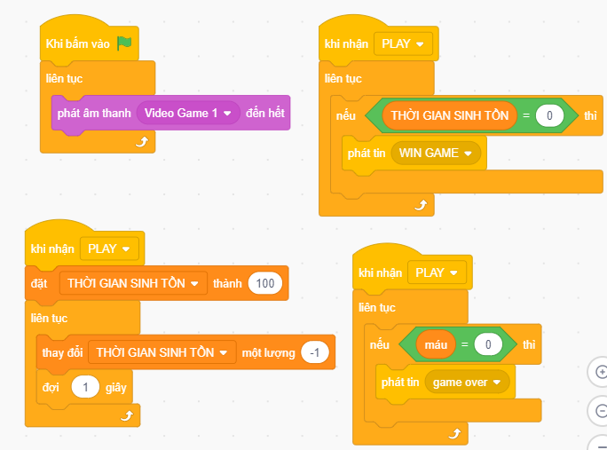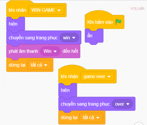 Các nhân vật: Người chơi, đạn, trung gian, quái vật, You win, play