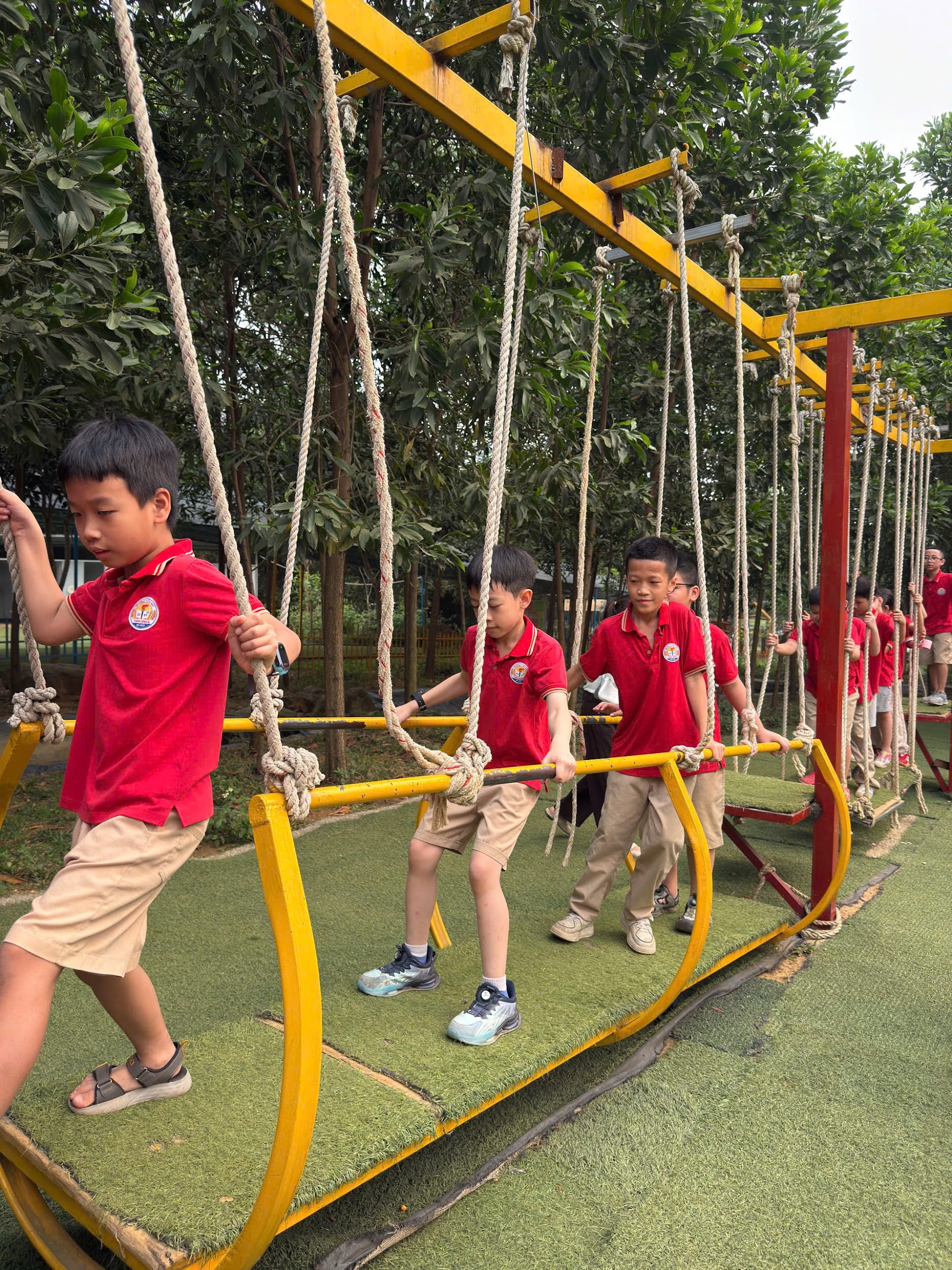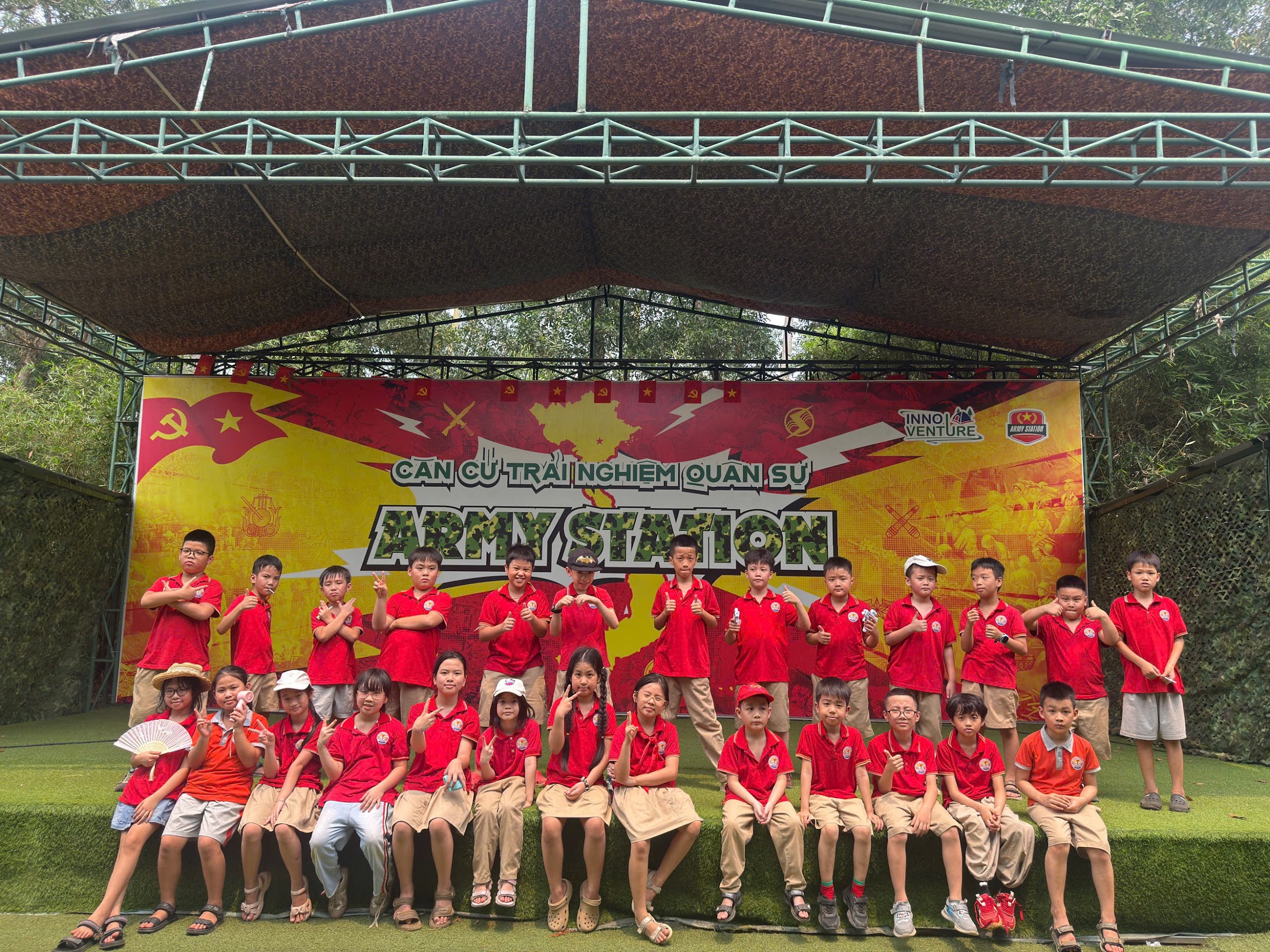 Ngay từ khi đặt chân đến Army Station, các em học sinh đã vô cùng hào hứng khi được khoác lên mình trang phục quân đội. Dưới sự hướng dẫn tận tình của các chú bộ đội, các em được tham gia nhiều hoạt động hấp dẫn như: tập hành quân, vượt chướng ngại vật, vận chuyển vật tư và trải nghiệm các trò chơi mô phỏng kỹ năng quân sự. Mỗi hoạt động đều đòi hỏi sự nhanh nhẹn, khéo léo và tinh thần phối hợp, giúp các em rèn luyện thể lực cũng như sự kiên trì.