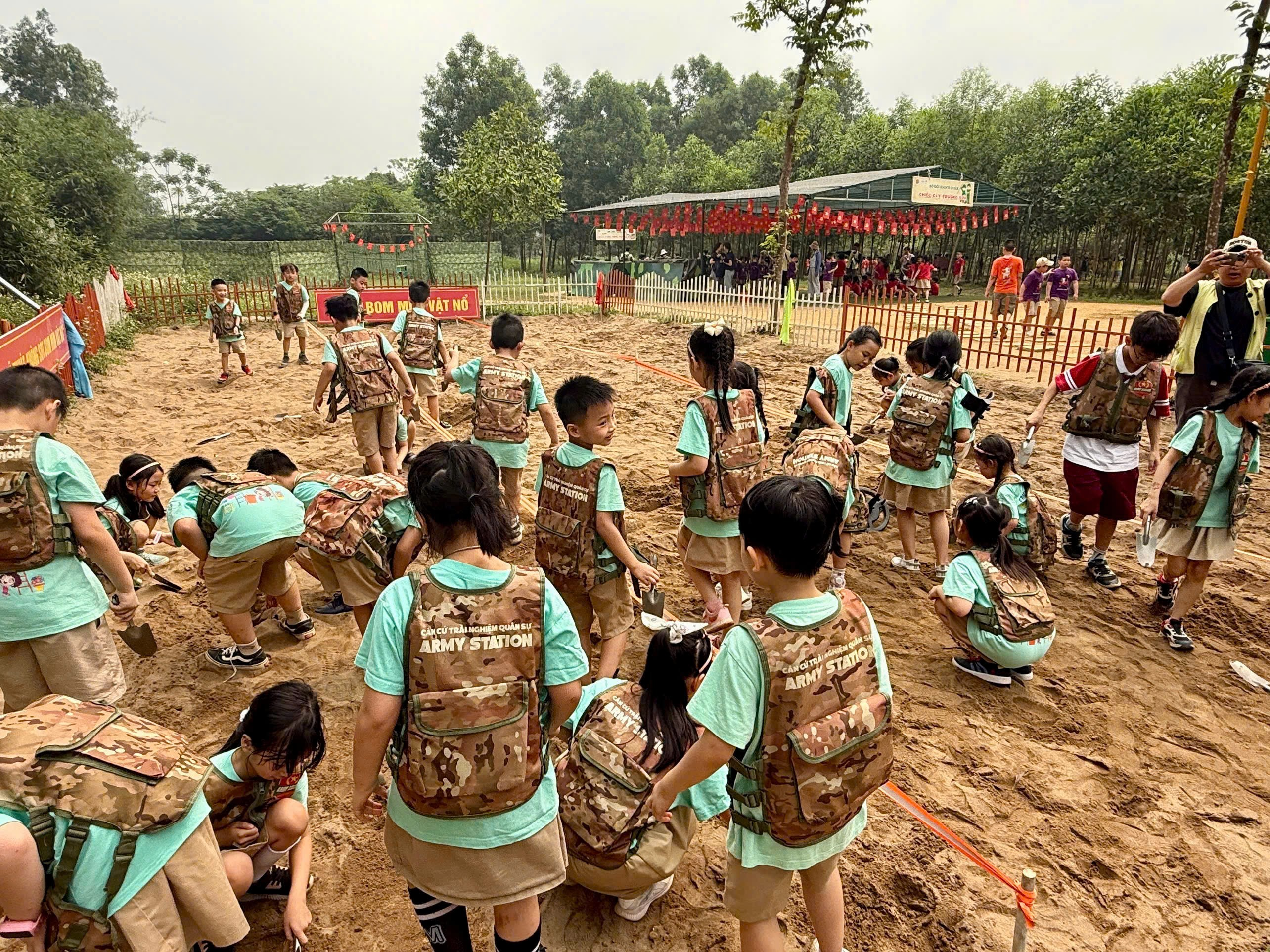 Ngay từ sáng sớm, các em học sinh đã có mặt đông đủ với tâm trạng háo hức, mong chờ một ngày học tập ngoài lớp học thật thú vị. Tại khu trải nghiệm, các em được tham gia nhiều hoạt động bổ ích như: tìm hiểu về môi trường quân đội, rèn luyện tác phong nhanh nhẹn, kỷ luật; tham gia các trò chơi vận động, thử thách bản thân qua các hoạt động mô phỏng huấn luyện quân sự phù hợp với lứa tuổi.
