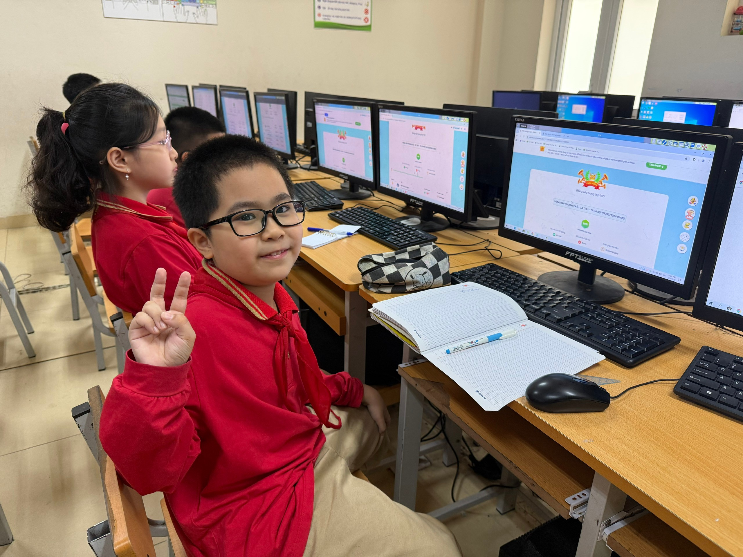 Nhằm tạo dựng sân chơi trí tuệ bổ ích, góp phần rèn luyện tư duy, củng cố kiến thức và khơi dậy niềm đam mê học tập và lan tỏa tình yêu với các môn Toán, Tiếng Việt, Tiếng Anh cũng như Toán Tiếng Anh. Cuộc thi “Đấu Trường Tổng Hợp - VioEdu” tạo cơ hội để học sinh có thể ứng dụng công nghệ thông tin vào việc học tập một cách chủ động, tích cực và thân thiện, đồng thời giúp các em củng cố và nâng cao kiến thức một cách hiệu quả. Sáng ngày 18/3/2026, Trường Tiểu học Thành Công A tổ chức Hội thi: “Đấu trường Tổng hợp – VioEdu”- cấp khu vực (cấp Phường) dành cho học sinh khối 4, đã thu hút sự quan tâm và tham gia hào hứng của các em học sinh.