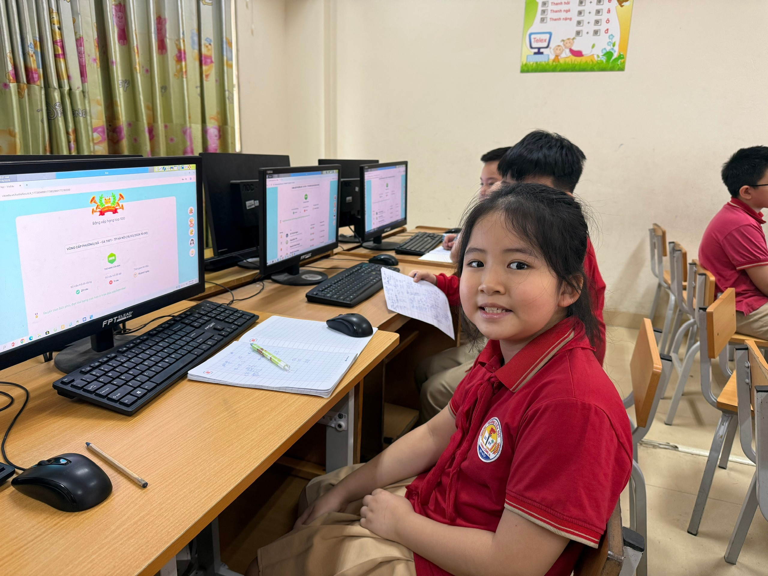 Hội thi VioEdu – Đấu trường Tổng hợp là hoạt động thiết thực, góp phần thúc đẩy phong trào học tập các môn học trong nhà trường, tăng cường ứng dụng công nghệ thông tin, qua đó khơi dậy niềm say mê học tập và tinh thần chủ động, sáng tạo của học sinh Trường Tiểu học Thành Công A. Cuối buổi thi, rất nhiều bạn học sinh hào hứng vui tươi bước ra khỏi phòng với điểm số khá cao.