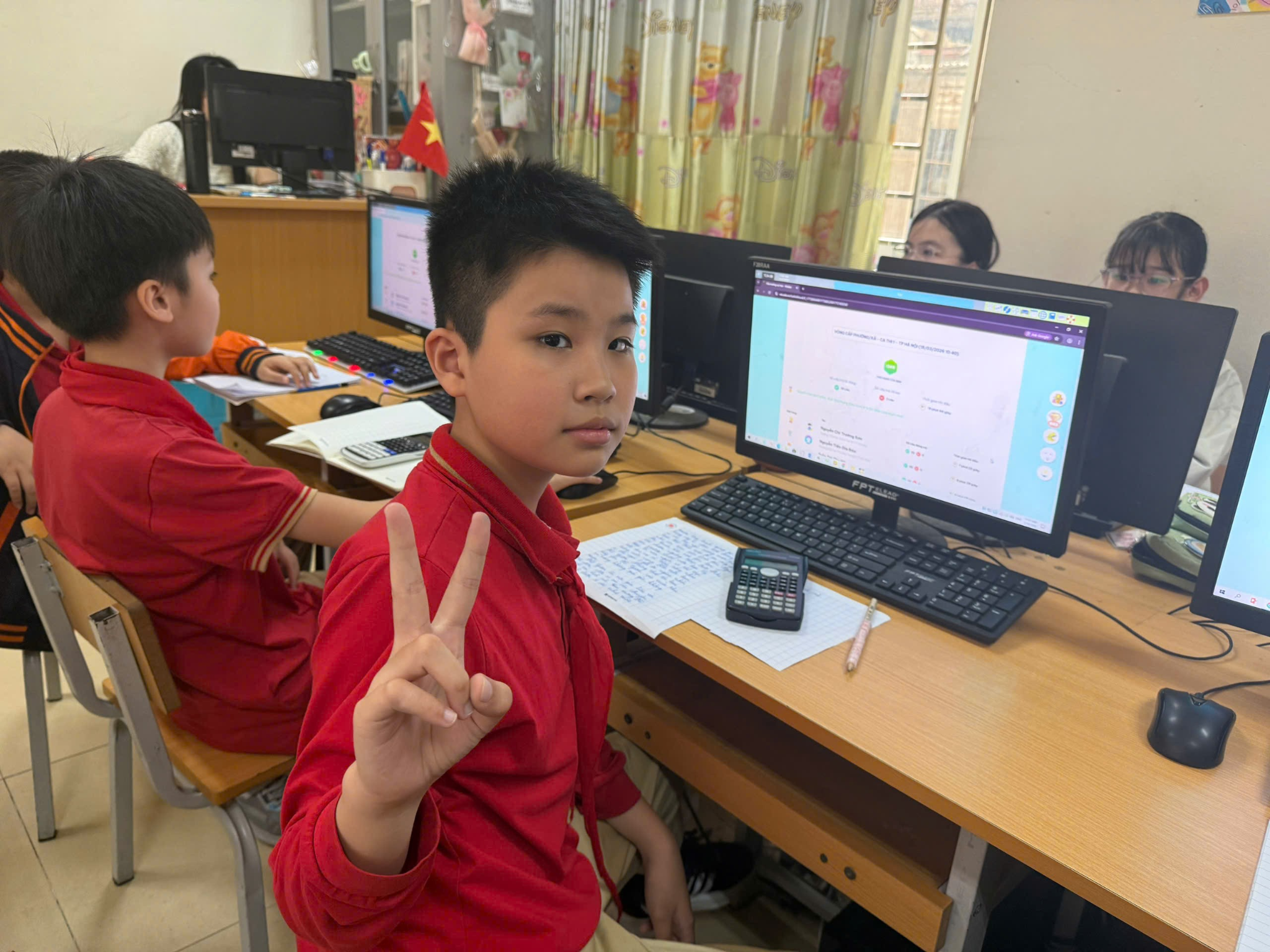 Hòa trong không khí thi đua học tập sôi nổi, tại phòng Tin học của nhà trường, 18 học sinh khối 5 Trường Tiểu học Thành Công A đã tự tin tham gia VioEdu – Đấu trường Tổng hợp vòng Khu vực (cấp phường).
