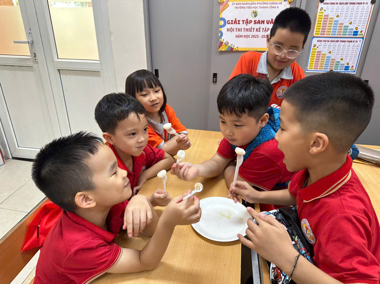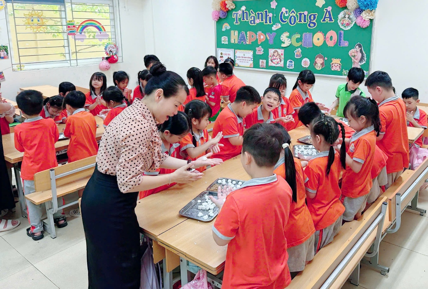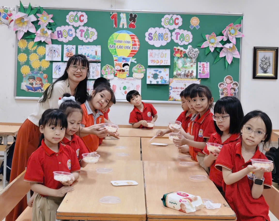 Niềm vui của các con học sinh lớp 1A2 khi được tham gia hoạt động trải nghiệm cùng cô Minh Thúy.