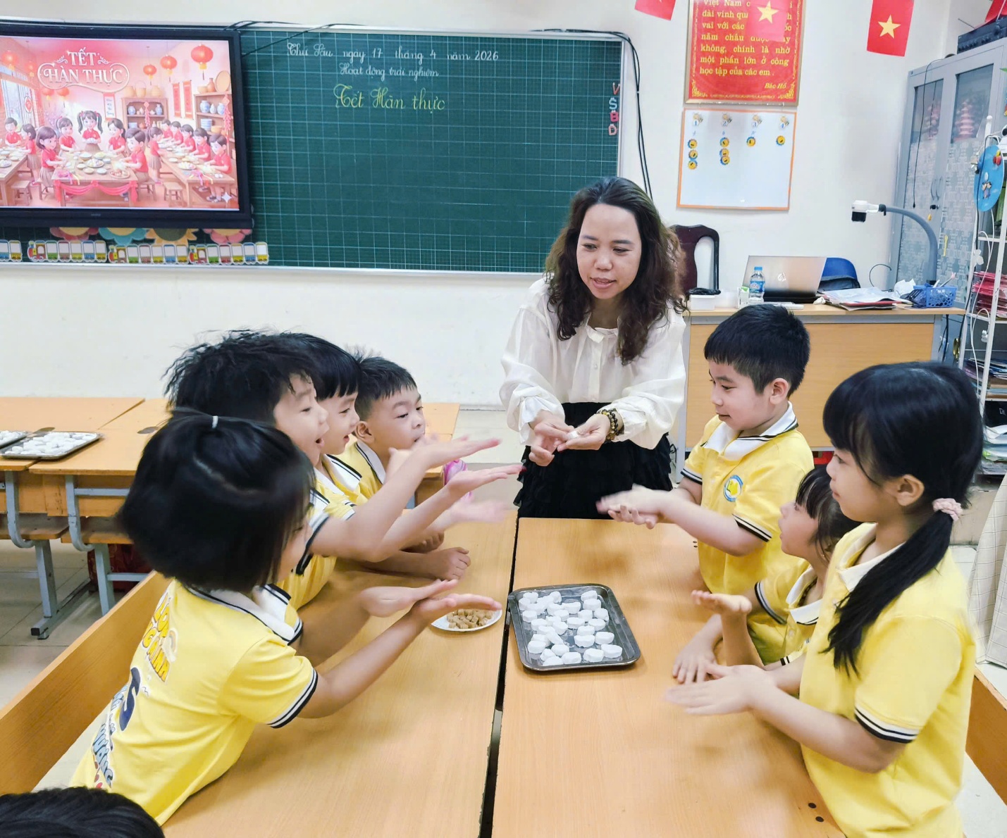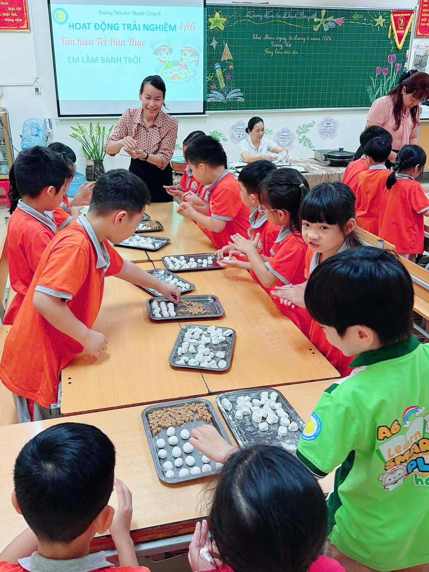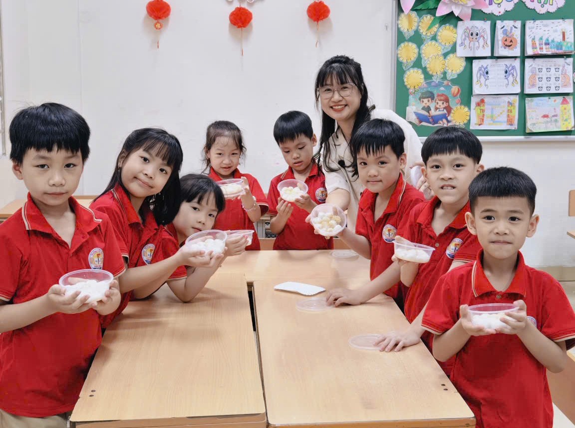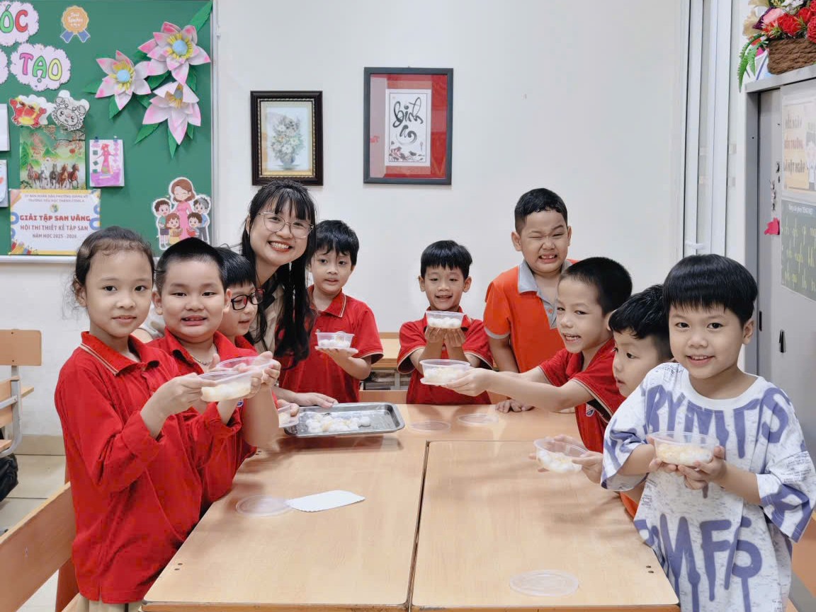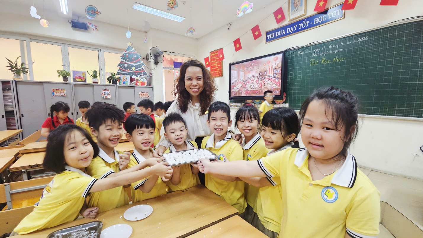Cô Minh Hằng và các bạn nhỏ lớp 1A6 tham gia hoạt động trải nghiệm “Vui Tết hàn thực”