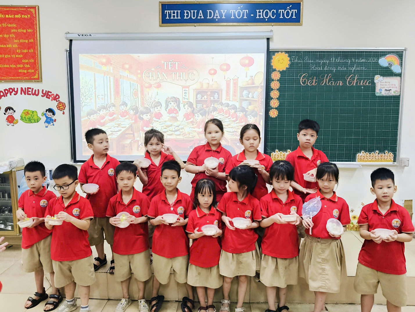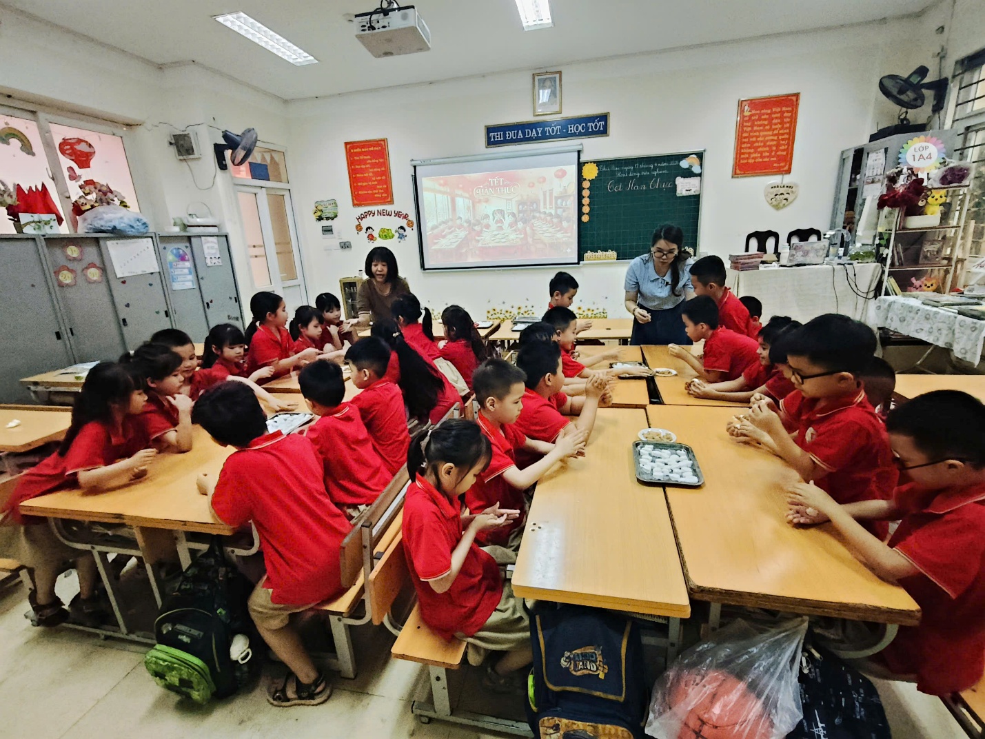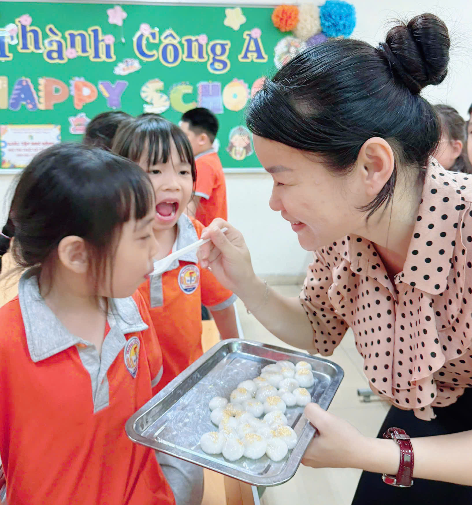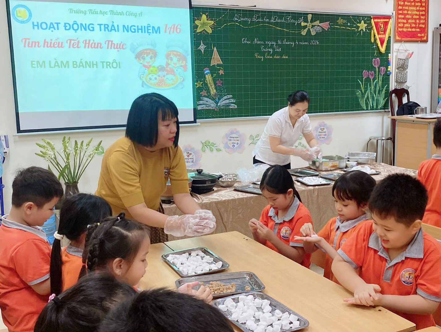 Cô Minh Hằng và các bạn nhỏ lớp 1A6 tham gia hoạt động trải nghiệm “Vui Tết hàn thực”