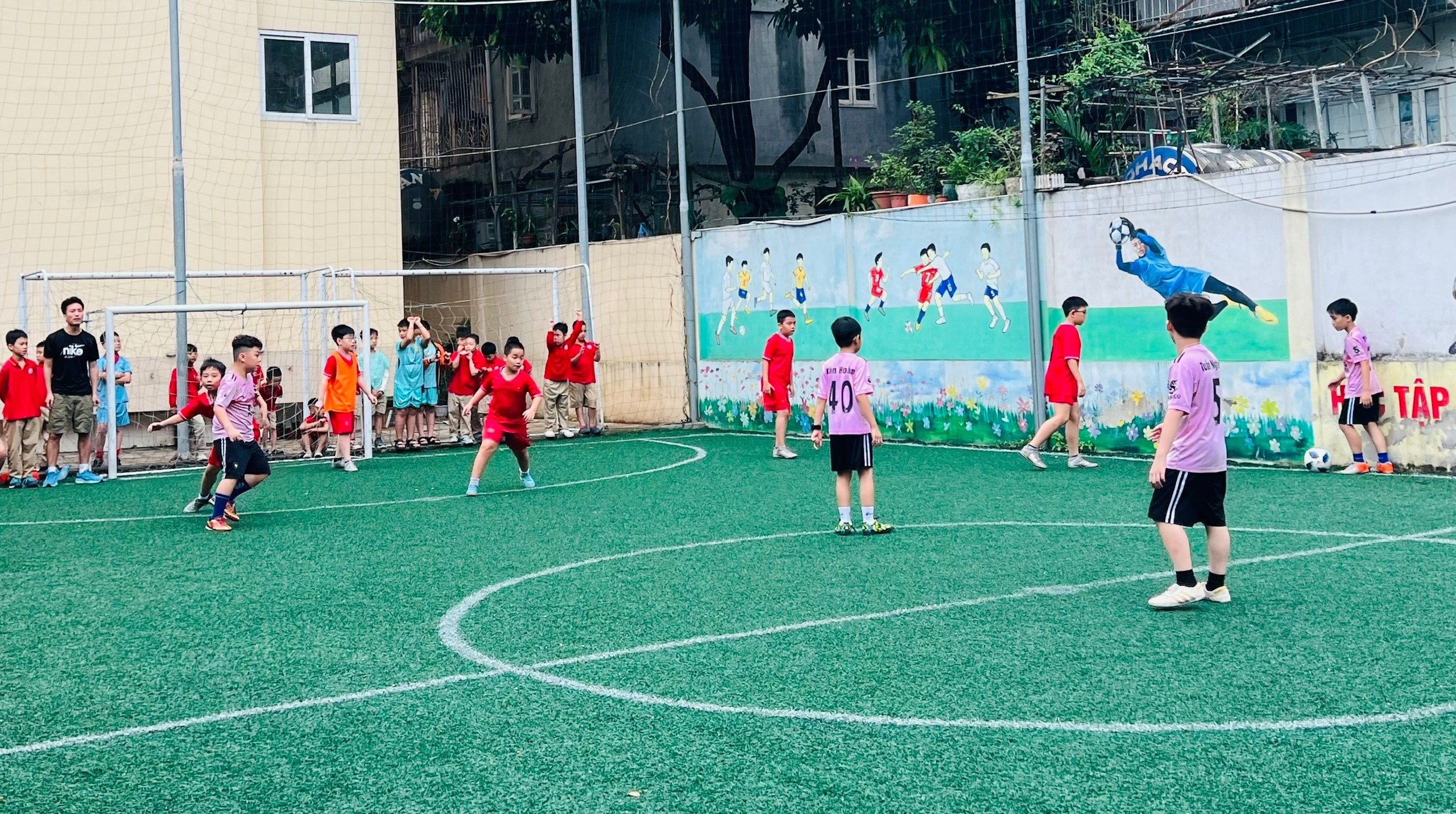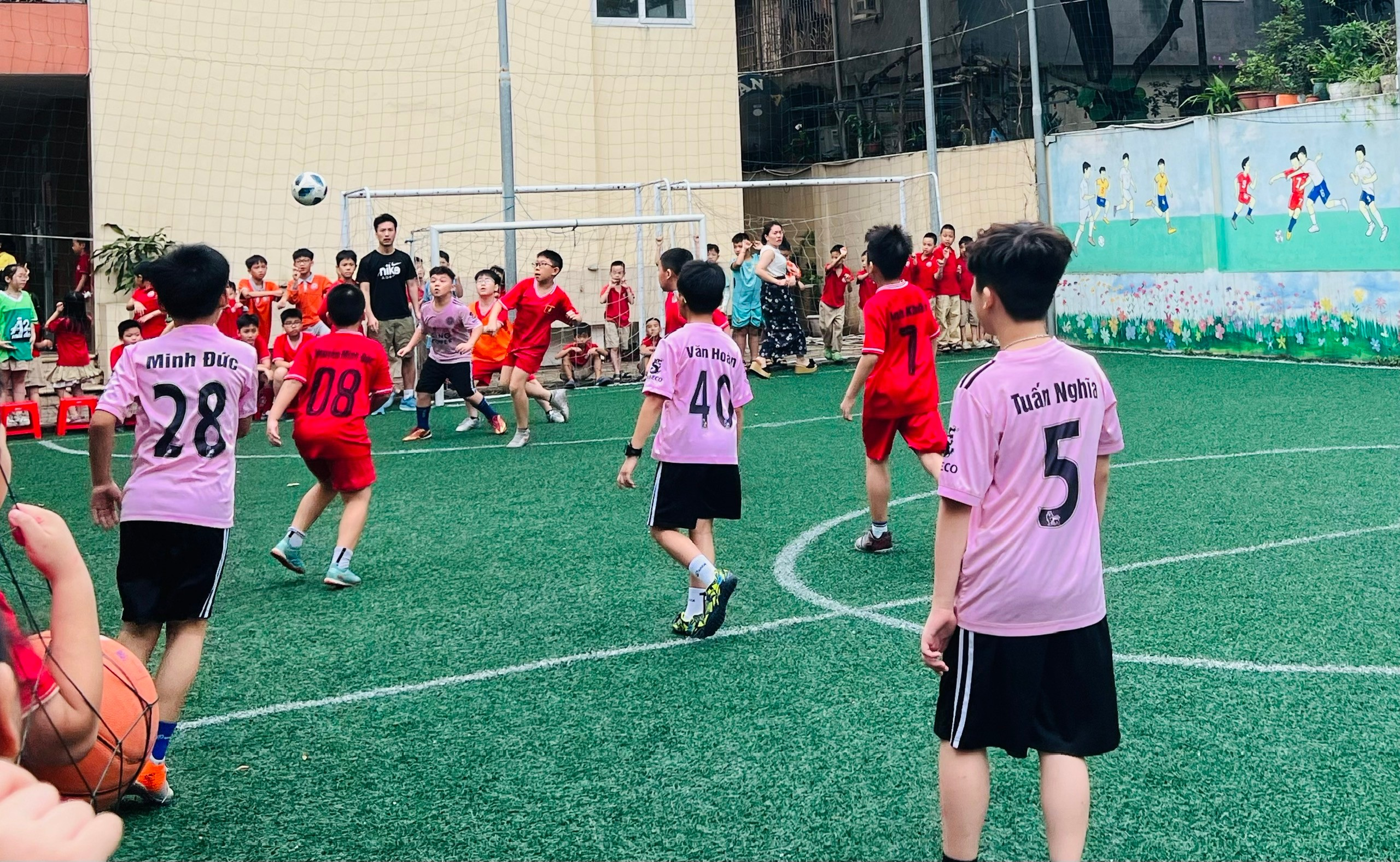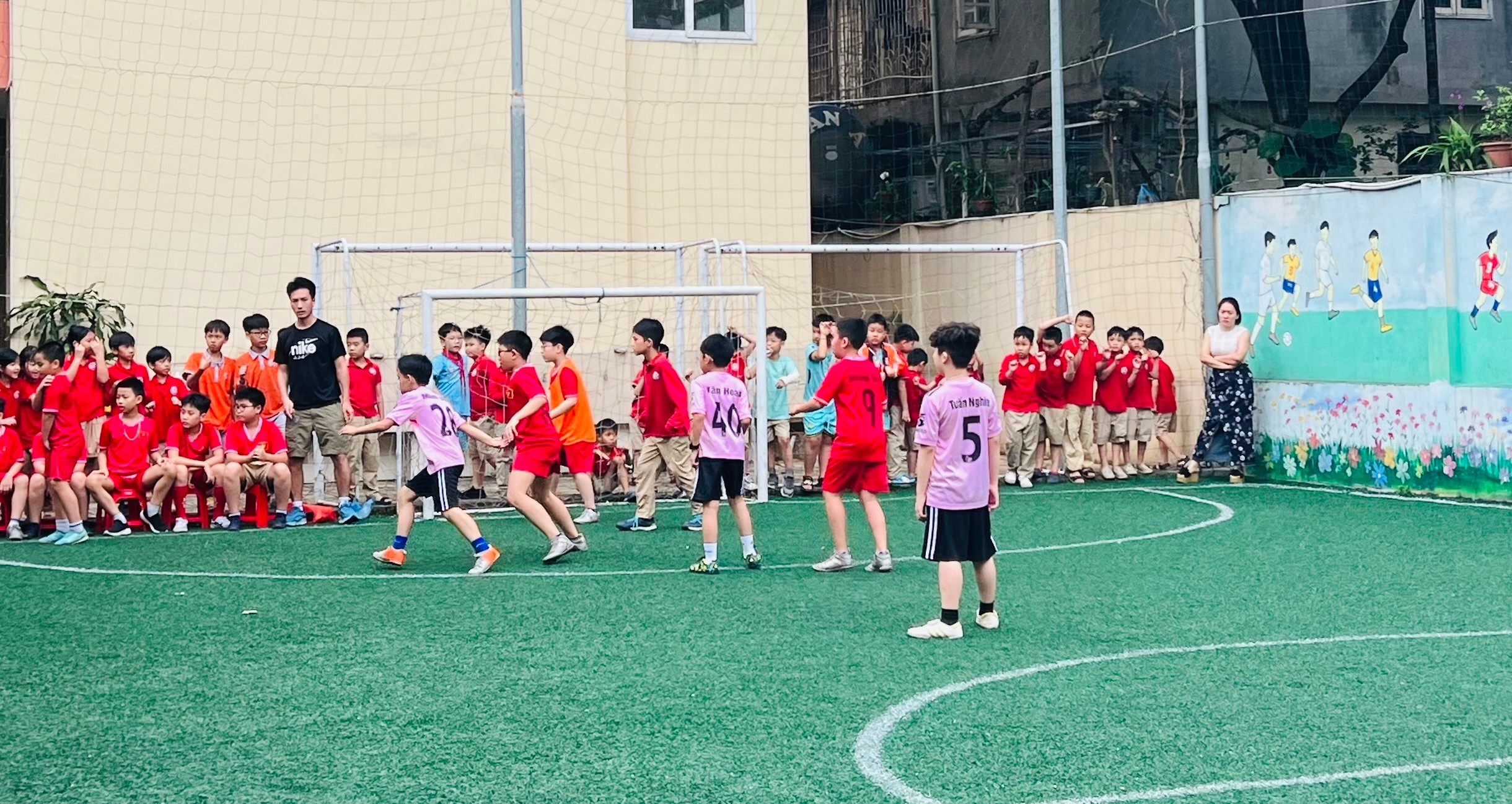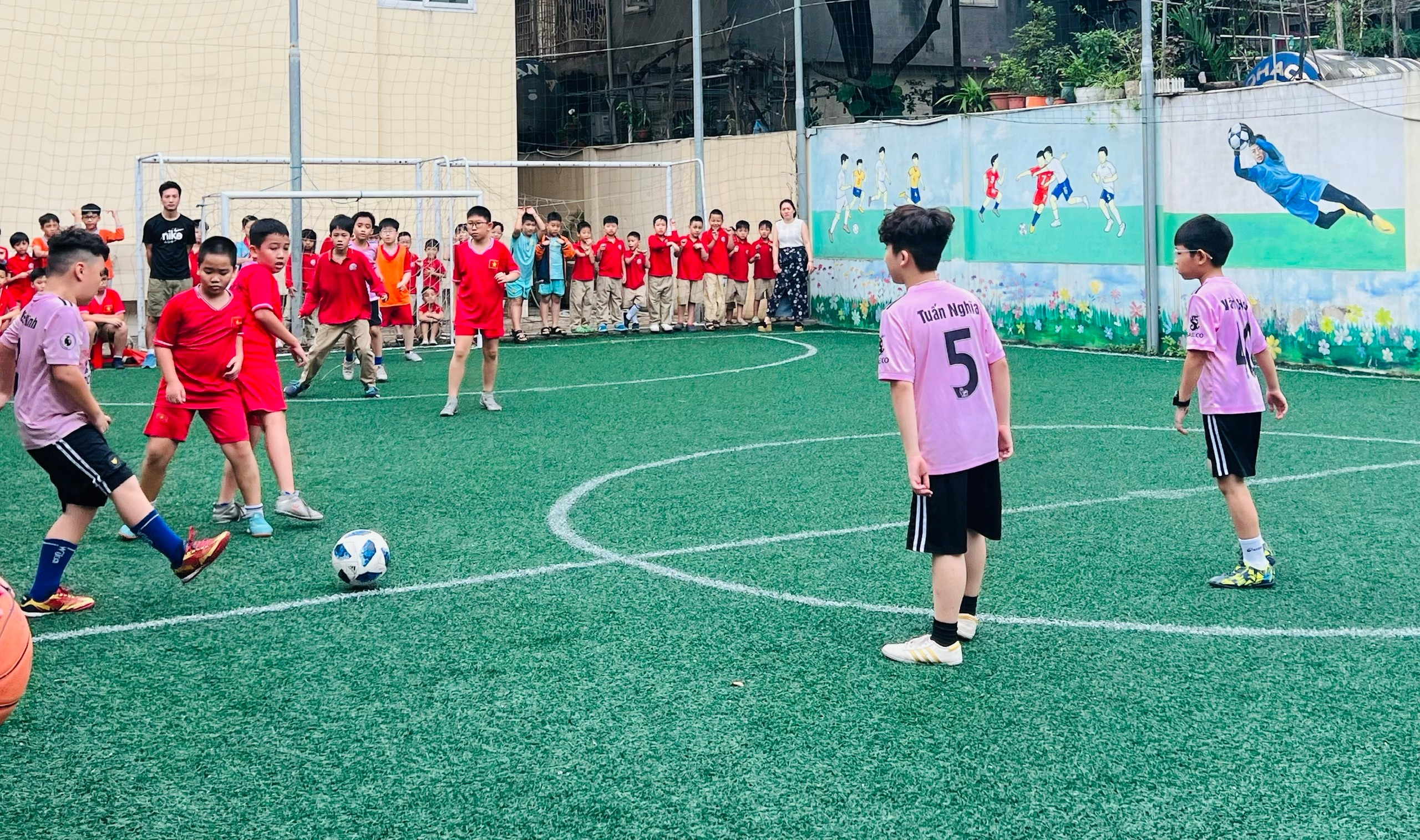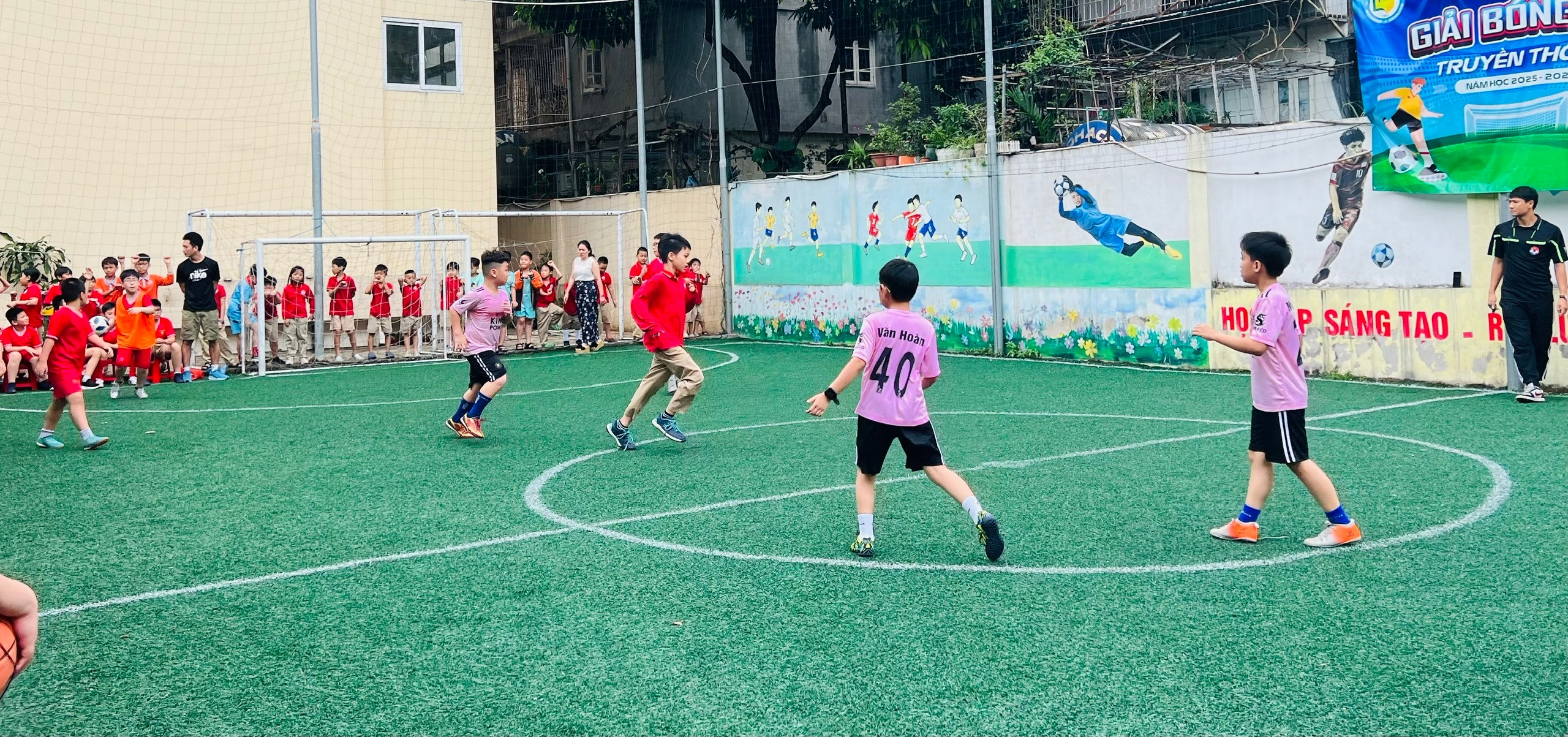 Trong khuôn khổ giải bóng đá học sinh Trường Tiểu học Thành Công A, trận tranh giải Ba giữa lớp 4A2 và 4A5 đã diễn ra đầy kịch tính, căng thẳng và hấp dẫn đến những phút cuối cùng. Đây thực sự là cuộc so tài giàu cảm xúc, nơi tinh thần thi đấu và ý chí quyết tâm của các cầu thủ nhí được thể hiện rõ nét.