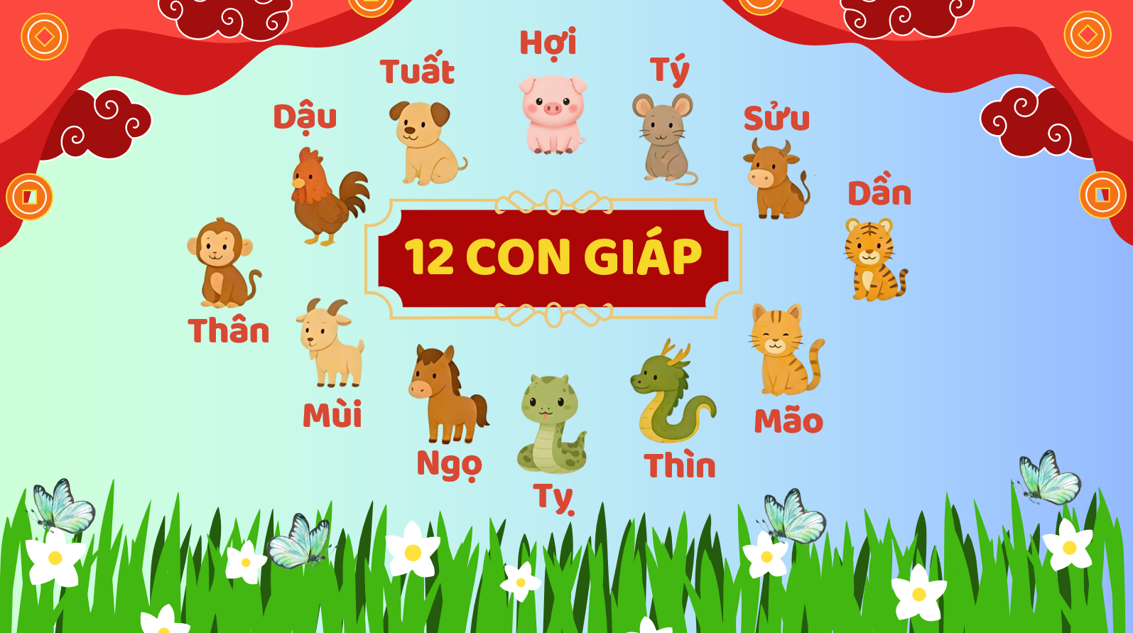 Mỗi chúng ta khi sinh ra đều thuộc vào 1 trong 12 con giáp. Đối với từng con giáp sẽ có những ý nghĩa đặc trưng riêng biệt. Chính vì thế việc nắm được ý nghĩa của các con giáp là điều rất quan trọng. Trong hoạt động CLB Thư viện Hè Năm 2025, các bạn nhỏ đã được xem bộ phim cổ tích “Truyền thuyết về 12 con giáp”. Mình sẽ bật mí lại nhé! Thứ tự 12 con giáp ở Việt Nam được quy định lần lượt là Tý, Sửu, Dần, Mão, Thìn, Tỵ, Ngọ, Mùi, Thân, Dậu, Tuất, Hợi.