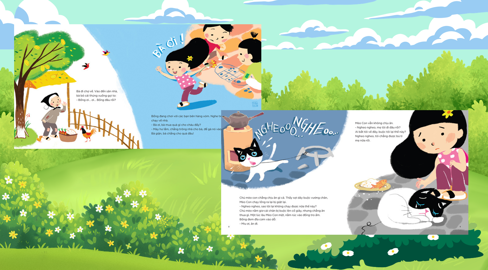 Những nhân vật như cô chủ Bống, bé Mèo Con, lão Chuột Cống, bác Nồi Đồng, cô Chổi Rơm… một lần nữa được tái sinh qua những nét vẽ đáng yêu, nhí nhảnh.