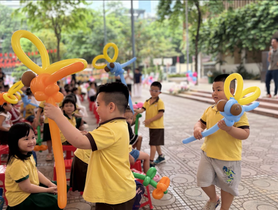 Để mang đến cho các bé một ngày hội ý nghĩa và trọn vẹn, nhà trường đã chủ động chuẩn bị chu đáo từ cơ sở vật chất đến nội dung chương trình. Khuôn viên sân trường được trang trí sinh động, tươi sáng; các lớp học và phòng chức năng được sắp xếp gọn gàng, sạch đẹp, sẵn sàng chào đón các “vị khách nhỏ tuổi”. Sự chuẩn bị kỹ lưỡng ấy đã góp phần tạo nên một không gian thân thiện, gần gũi, giúp các bé nhanh chóng hòa nhập và cảm thấy thoải mái ngay từ những phút đầu tiên.