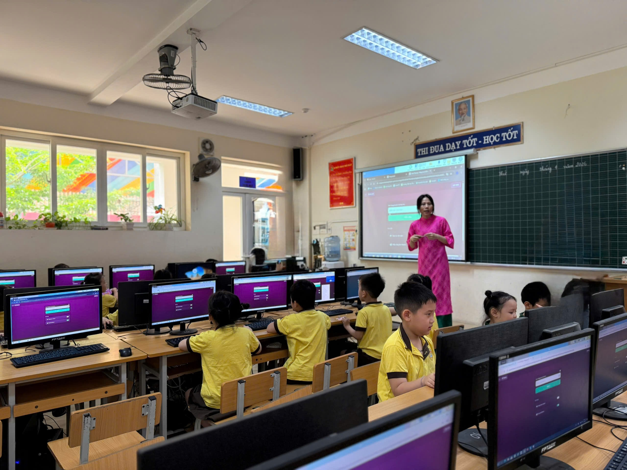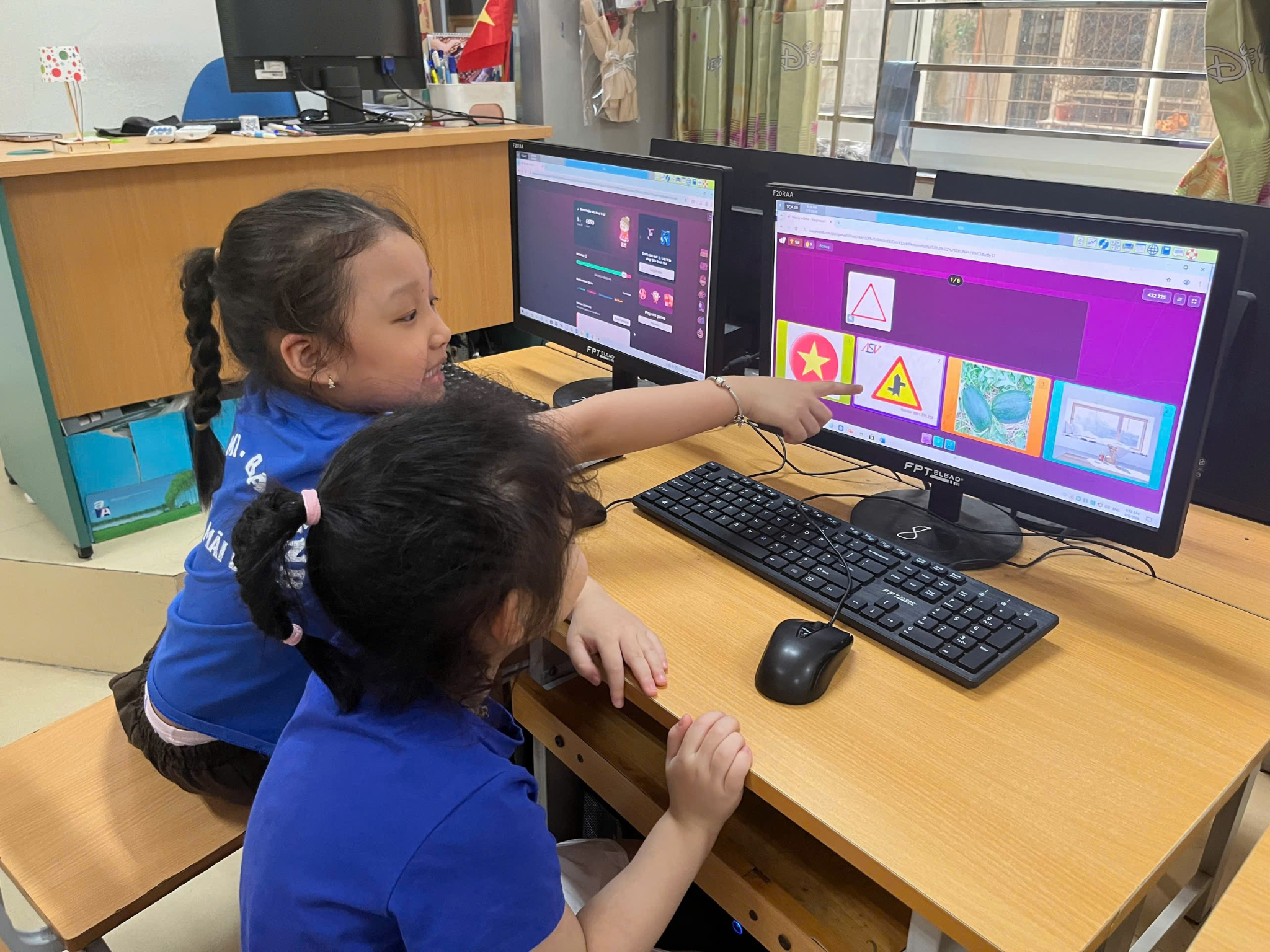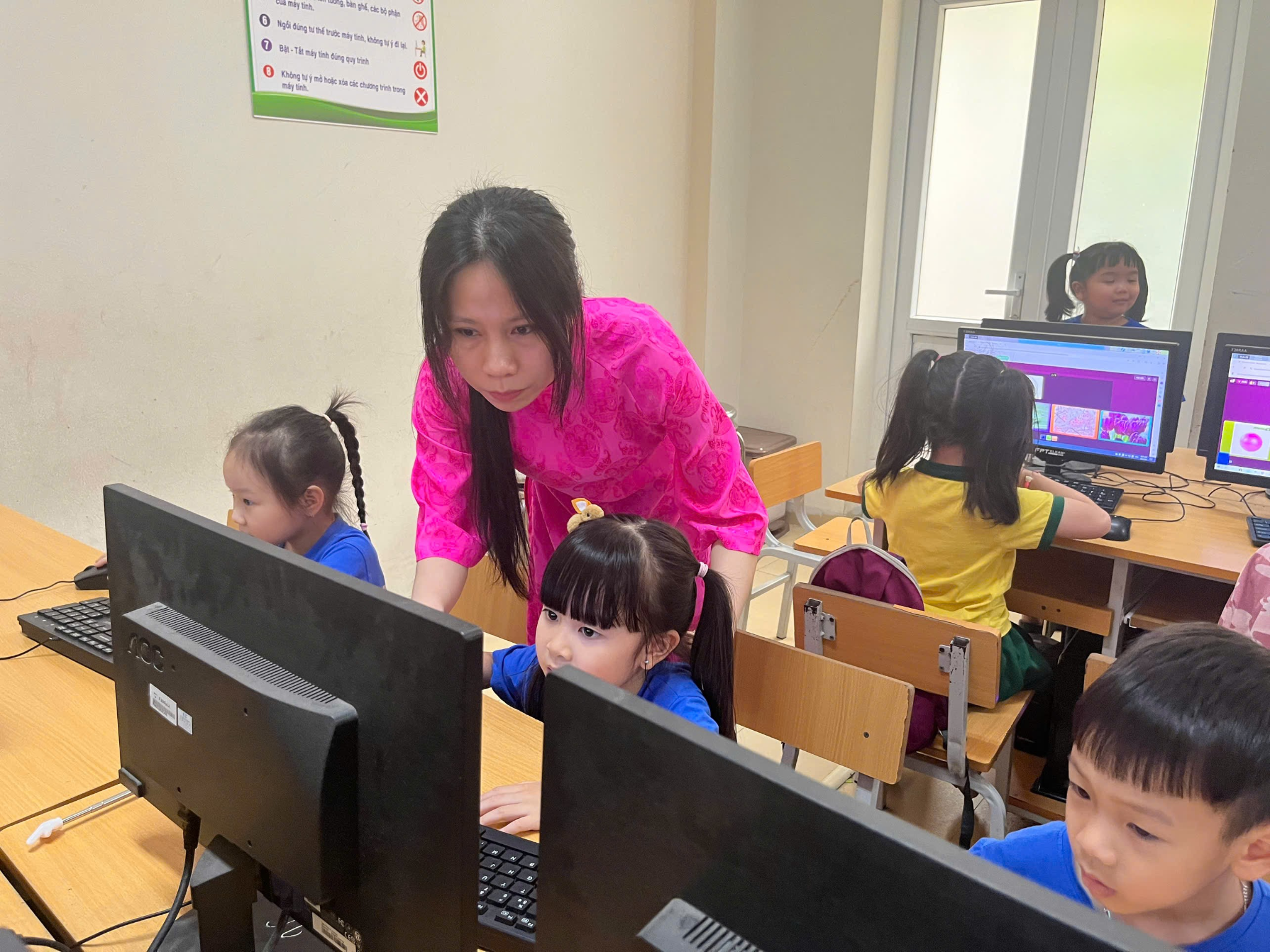Các bé làm quen với phòng Tin học và những thao tác công nghệ đầu tiên