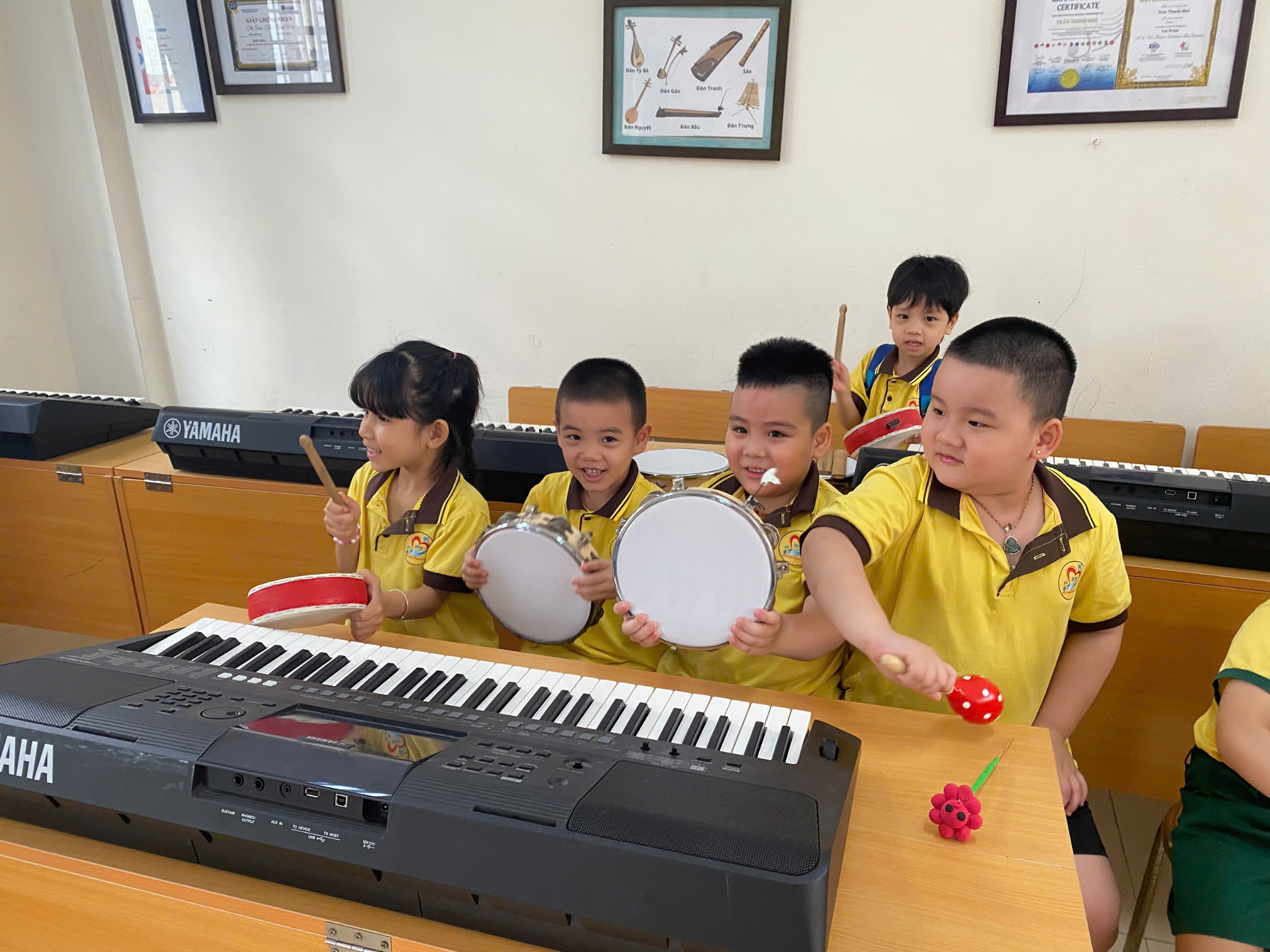 Các bé hào hứng làm quen với phòng Âm nhạc với những giai điệu vui tươi