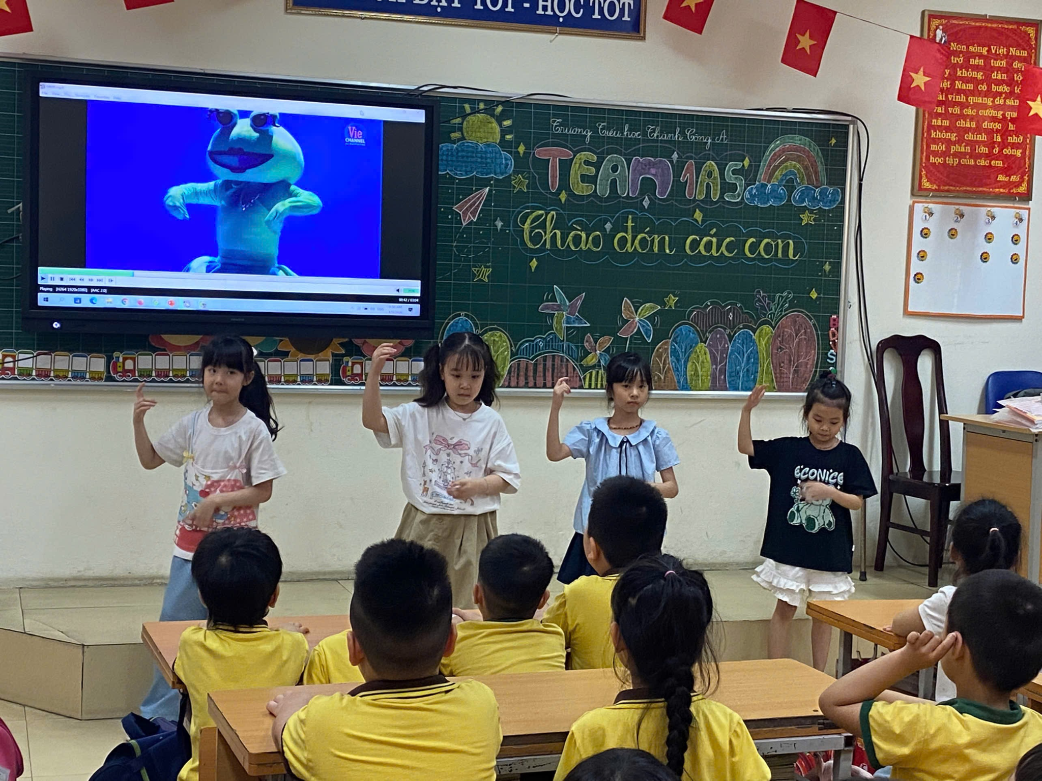 Mở đầu chương trình là các tiết mục văn nghệ vui tươi do các thầy cô giáo nhà trường biểu diễn, mang đến không khí sôi động và đầy cảm xúc. Xen kẽ là phần giao lưu với các trò chơi tập thể hấp dẫn, thu hút sự tham gia nhiệt tình của các bé. Những tiếng cười giòn tan, những tràng vỗ tay rộn ràng đã khiến sân trường trở nên náo nhiệt, tràn đầy năng lượng.