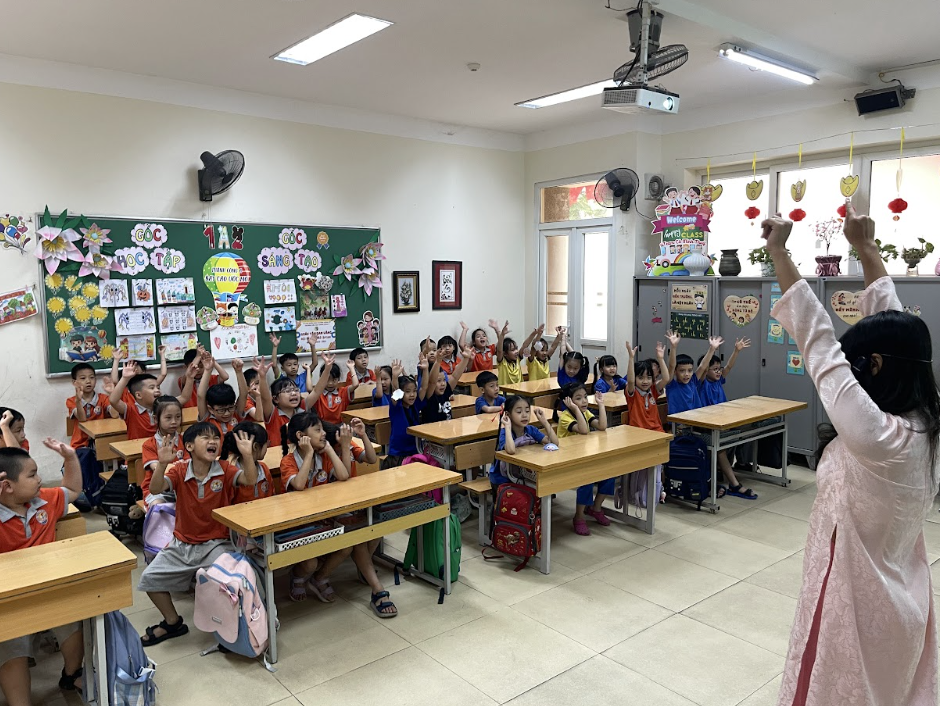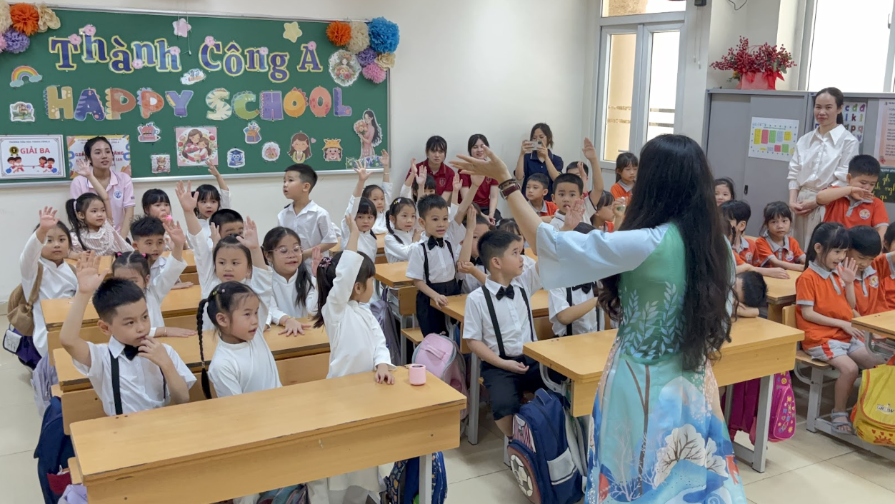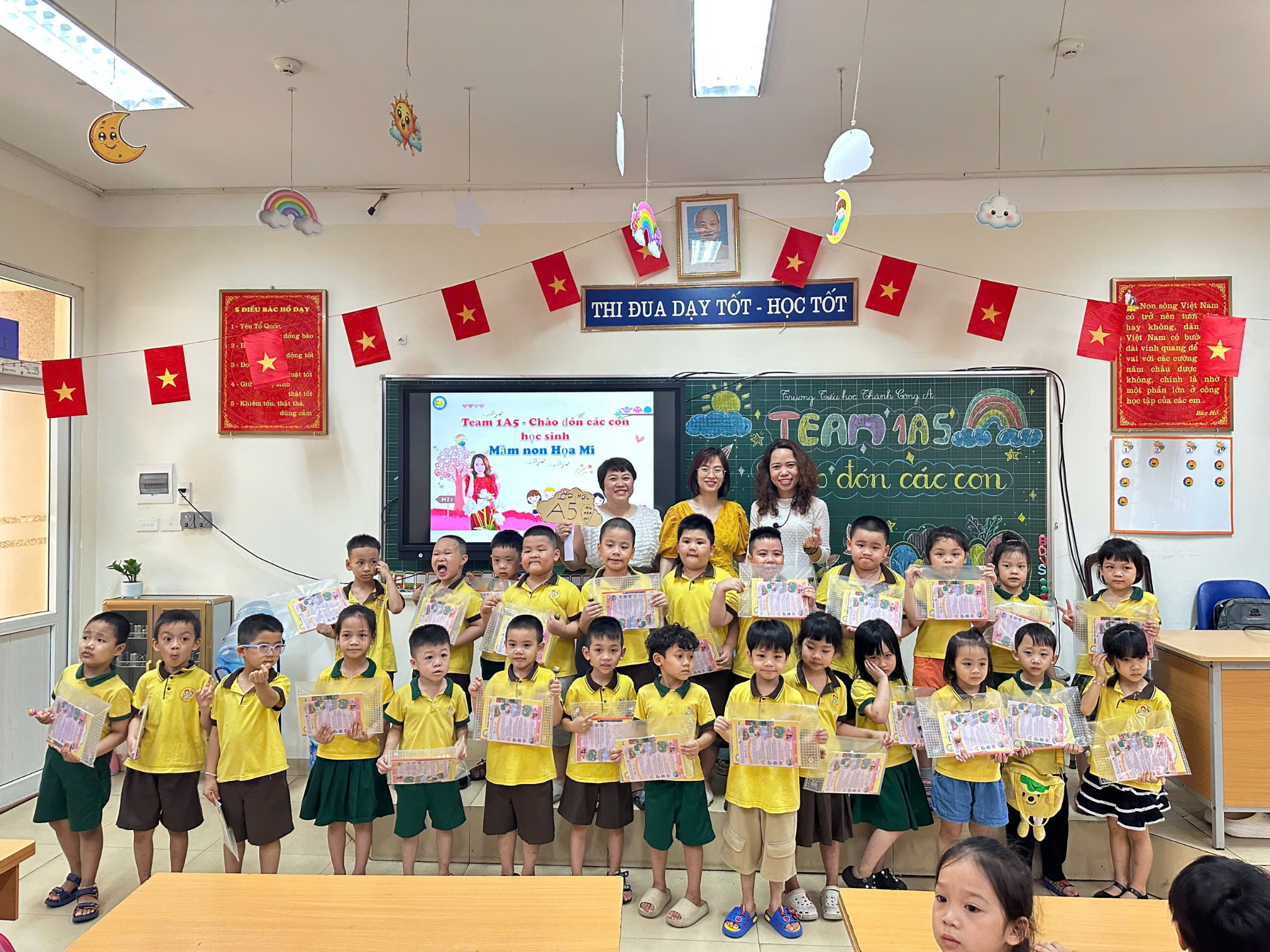 Ngay khi đến trường, các bé đã nhận được sự đón tiếp nồng nhiệt từ các thầy cô và anh chị học sinh. Những nụ cười thân thiện, sự quan tâm ân cần đã giúp các em xóa đi những bỡ ngỡ ban đầu, tự tin hơn khi bắt đầu hành trình khám phá.
