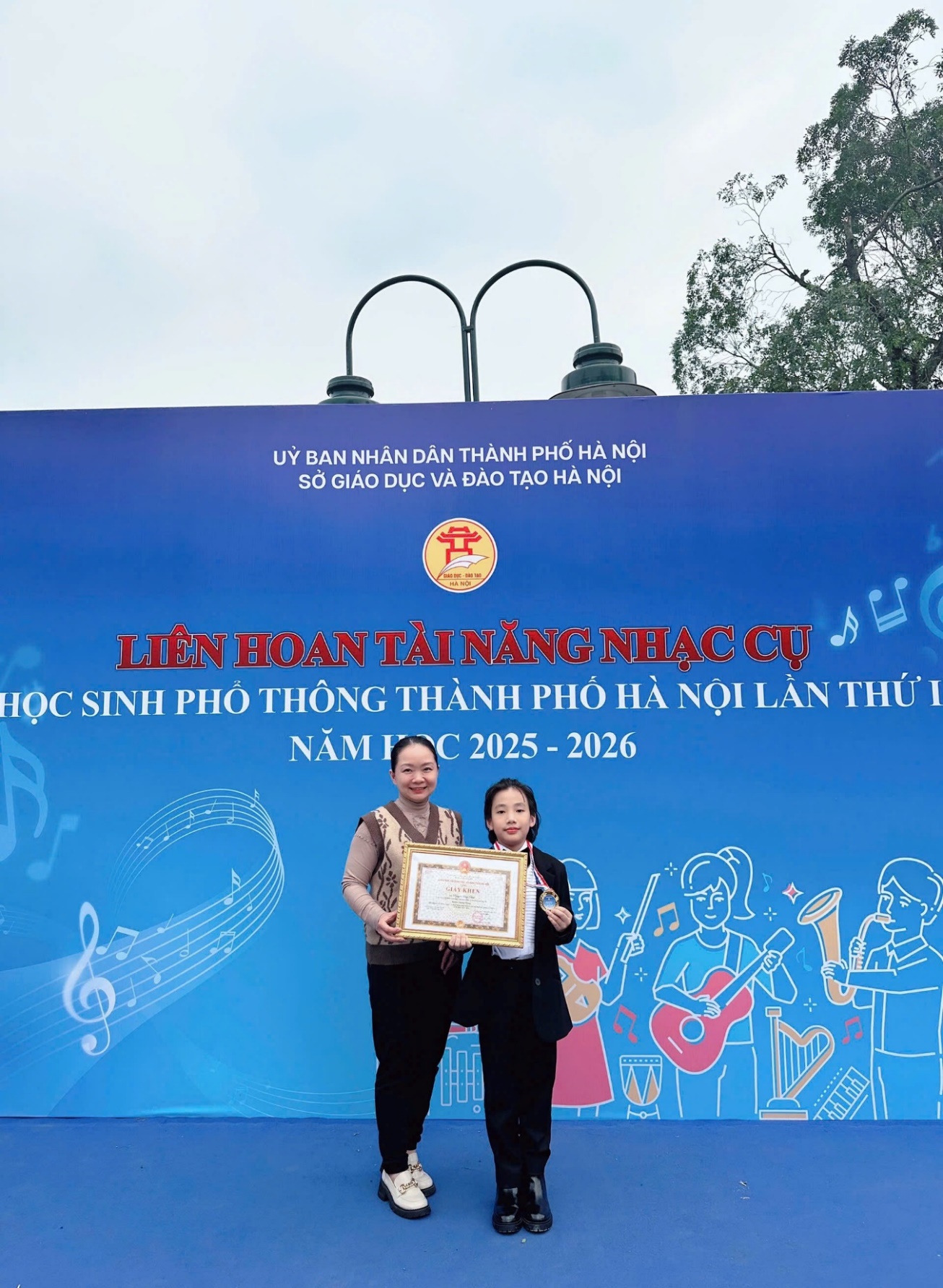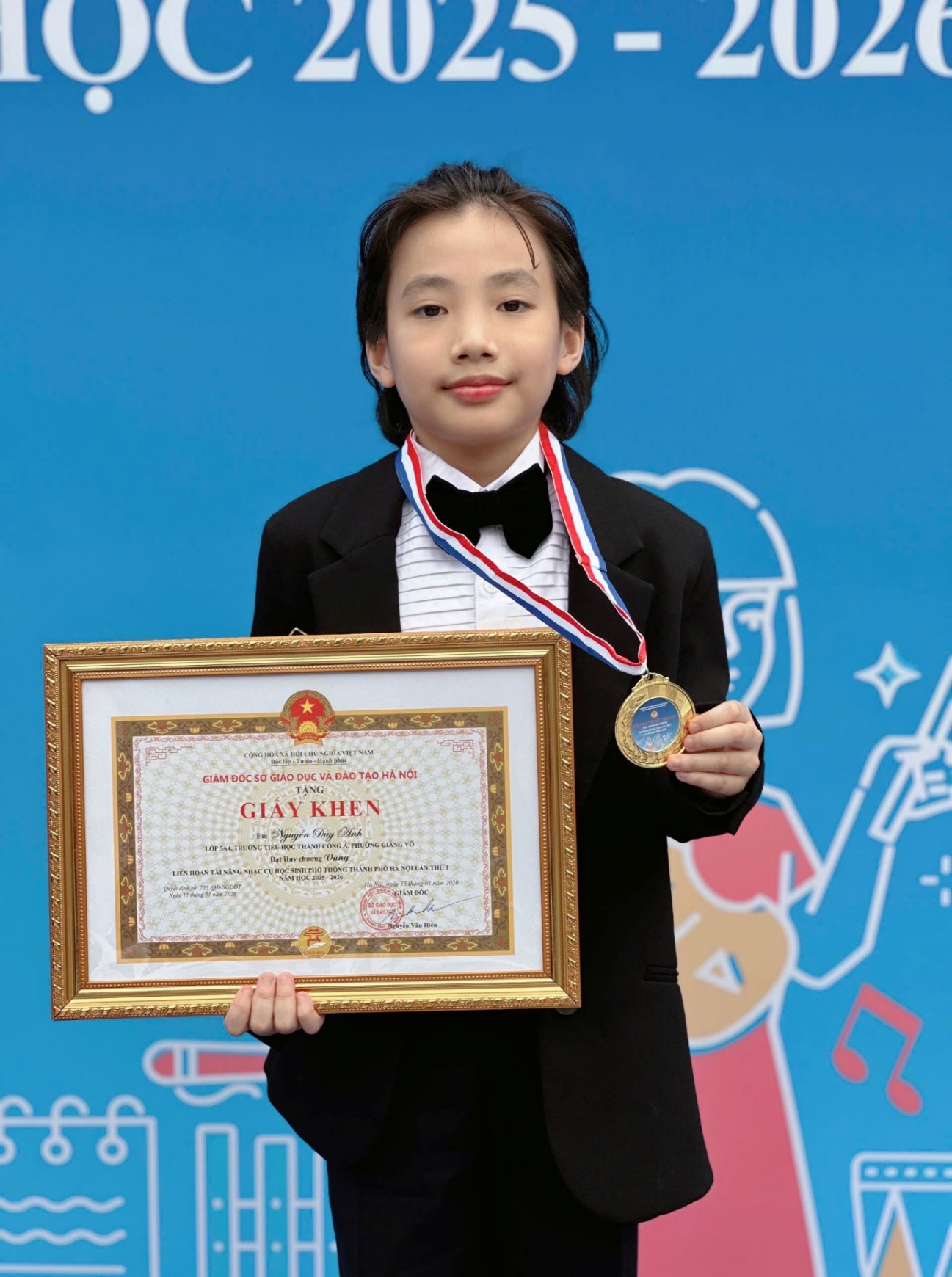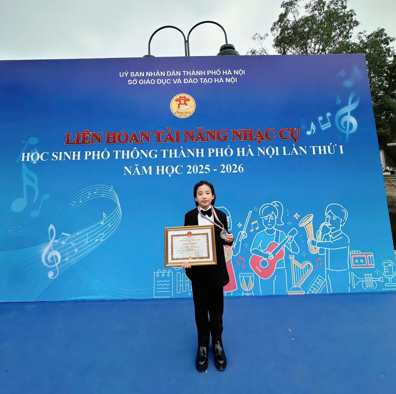 Trong bầu không khí sôi nổi của lễ Tổng kết Liên hoan tài năng nhạc cụ. Trường Tiểu học Thành Công A đón nhận thêm một tin vui rực rỡ! Em Nguyễn Duy Anh – học sinh lớp 5A4 đã xuất sắc vượt qua hàng trăm thí sinh để giành tấm Huy chương Vàng quý giá tại sân khấu Liên hoan tài năng nhạc cụ cho học sinh phổ thông Thành phố năm học 2025-2026.
