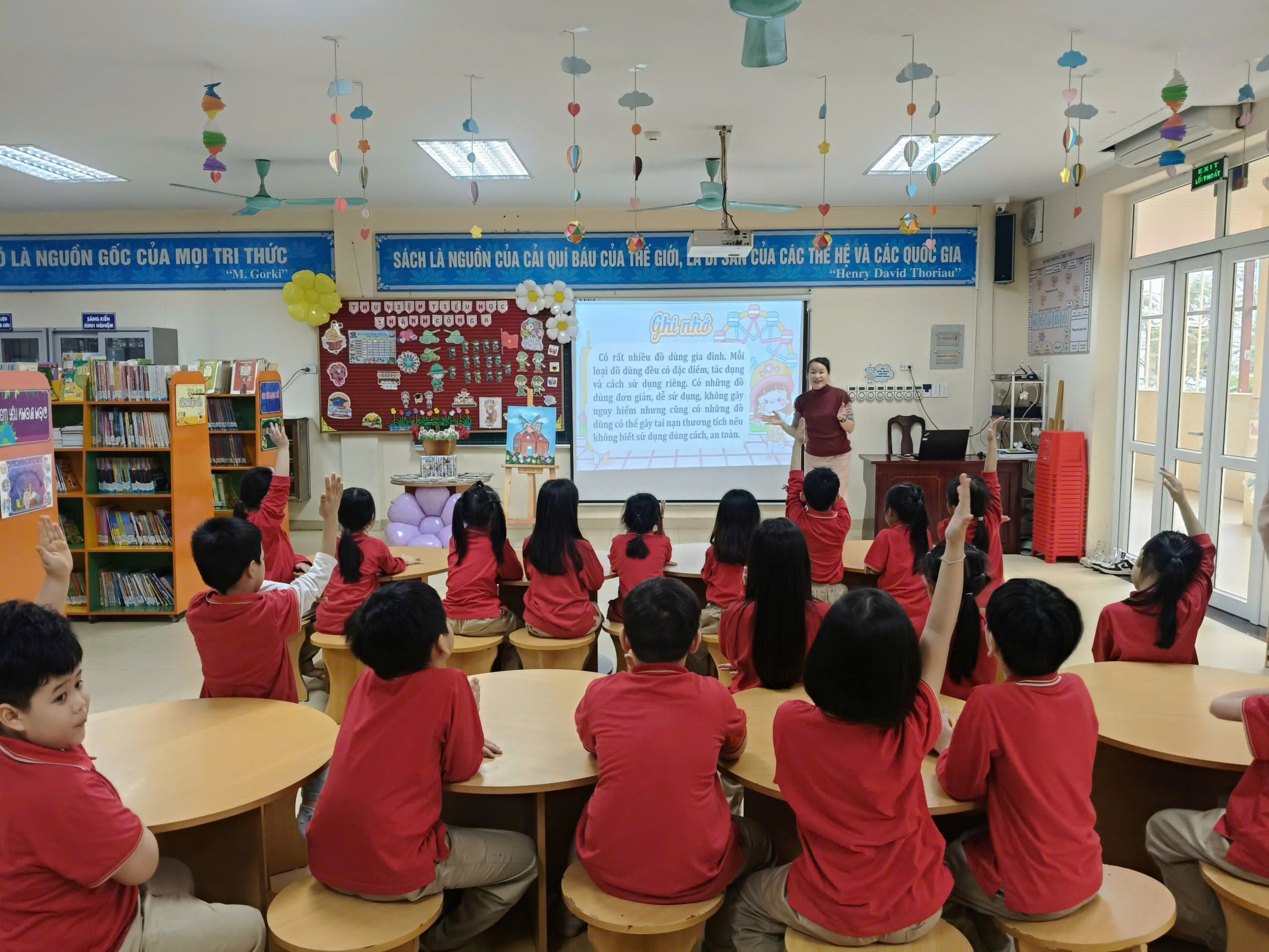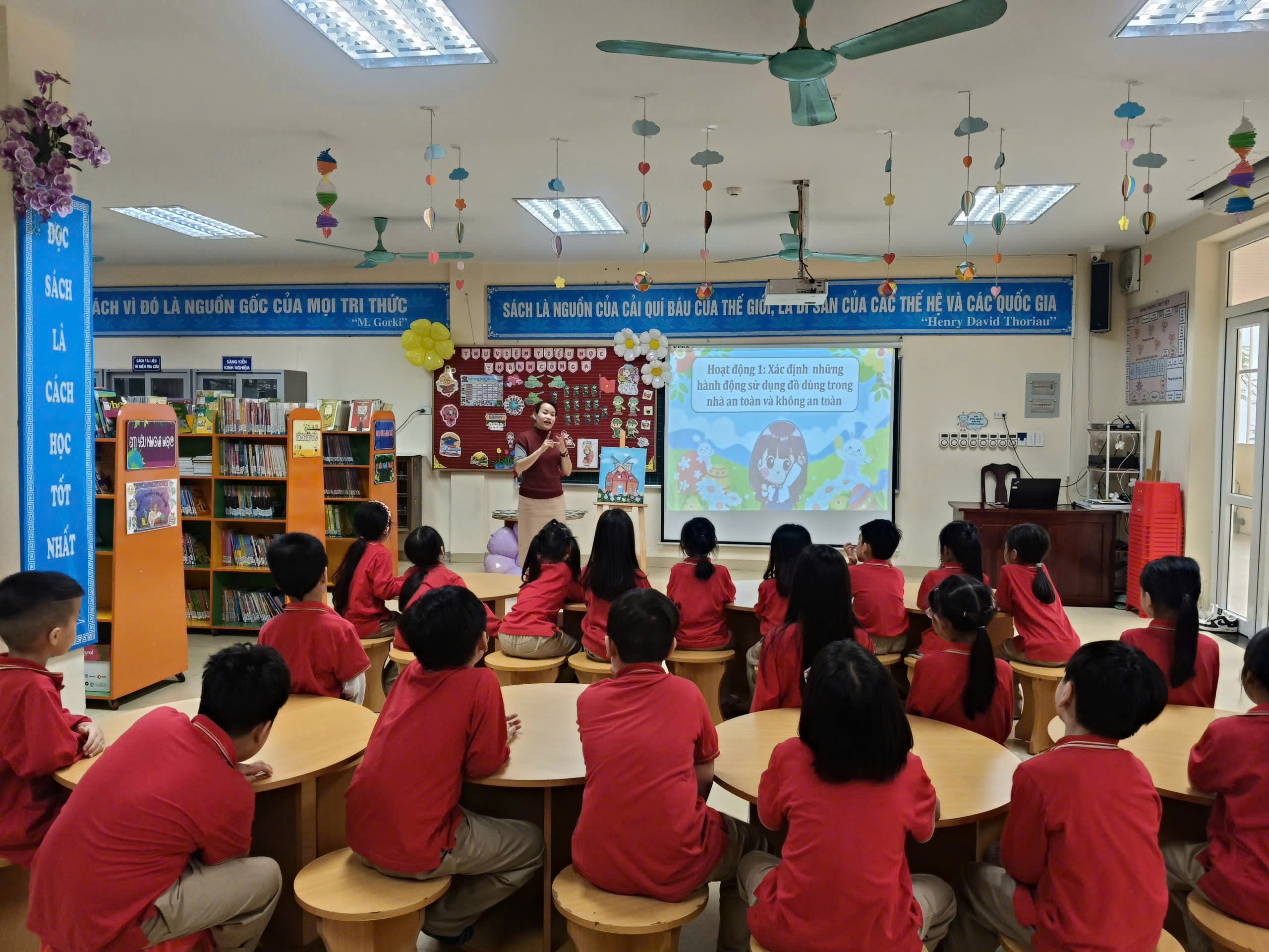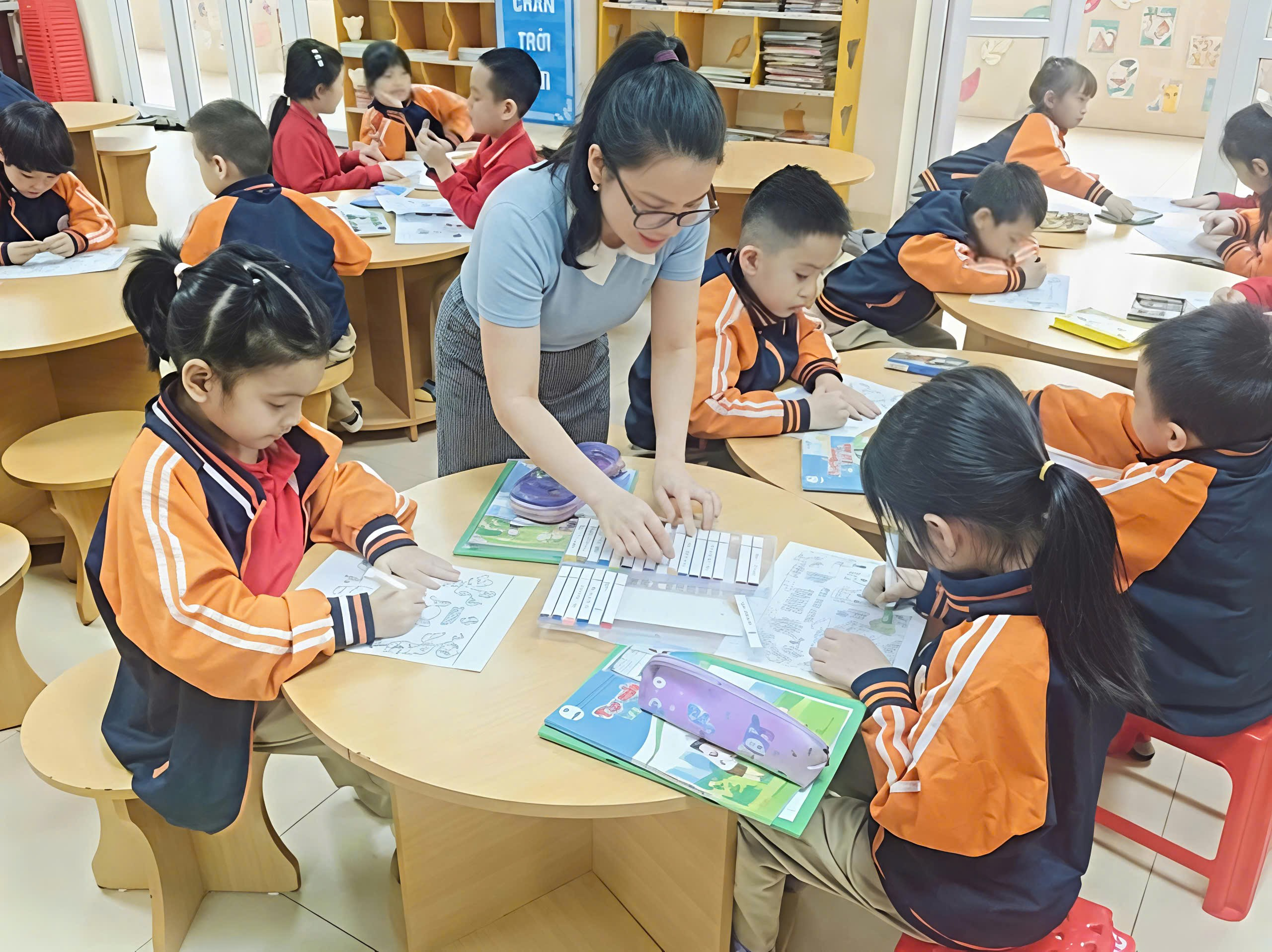 Thư viện trường học đóng vai trò là trung tâm tri thức, nơi không chỉ lưu giữ sách mà còn là không gian học tập năng động, khơi nguồn sáng tạo cho học sinh. TNVrường Tiểu học Thành Công A đã triển khai chương trình tổ chức các tiết học chính khóa ngay tại thư viện cho khối lớp 1, thay đổi hoàn toàn cách tiếp cận kiến thức cho các em trong những năm đầu tiểu học. Mục tiêu chính của hoạt dộng là giúp các em tiếp cận đa dạng các loại sách theo từng chủ đề học tập một cách hiệu quả, loại bỏ cảm giác khô khan của lớp học truyền thống và khơi gợi niềm đam mê đọc sách từ sớm.
