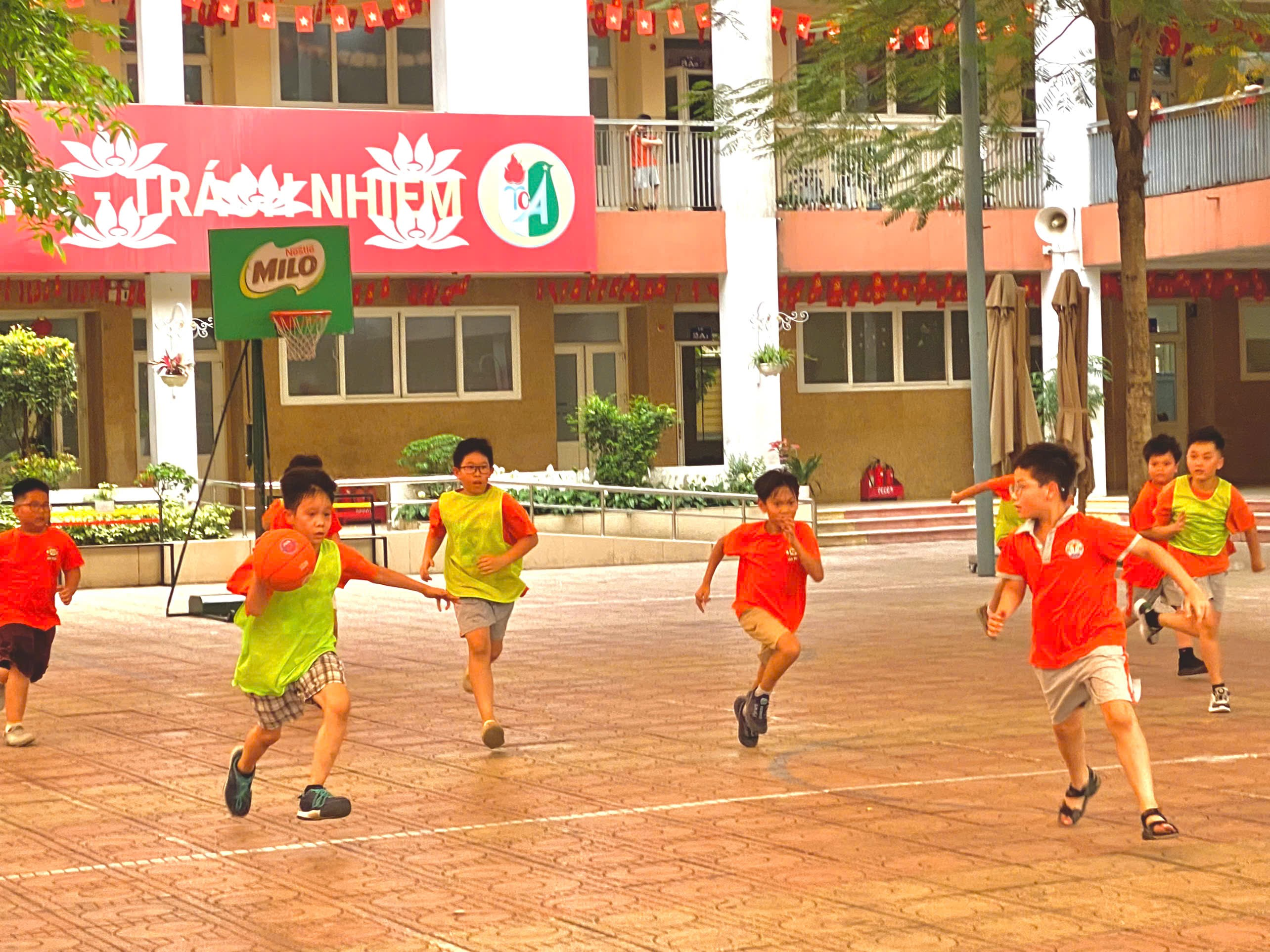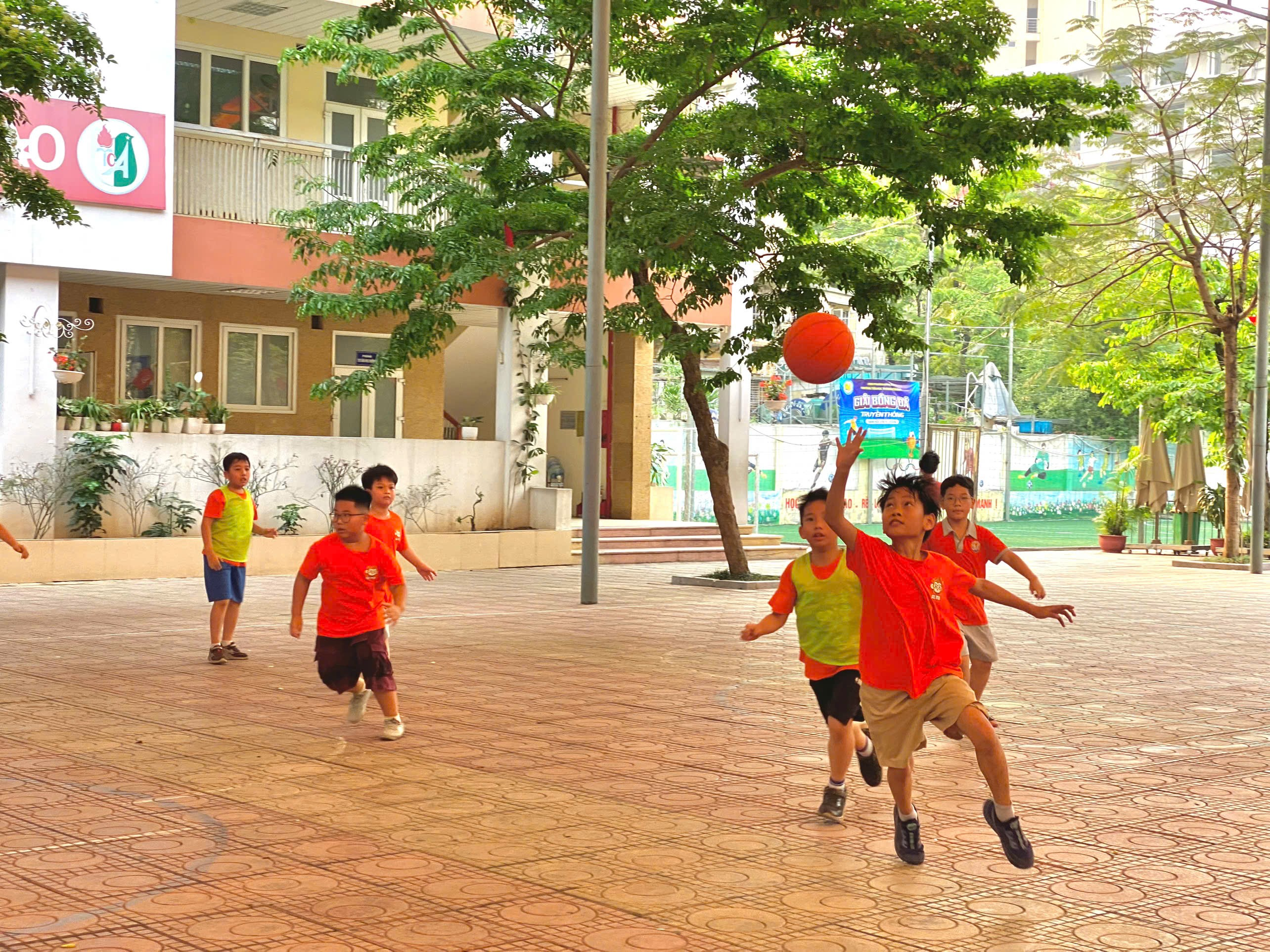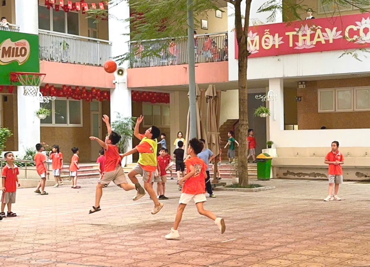 Trong khuôn khổ các hoạt động thể dục thể thao của nhà trường, trận chung kết bóng rổ nam giữa hai lớp 4A2 và 4A3 đã diễn ra trong không khí sôi nổi, hào hứng, thu hút sự cổ vũ nhiệt tình từ đông đảo thầy cô giáo và học sinh.