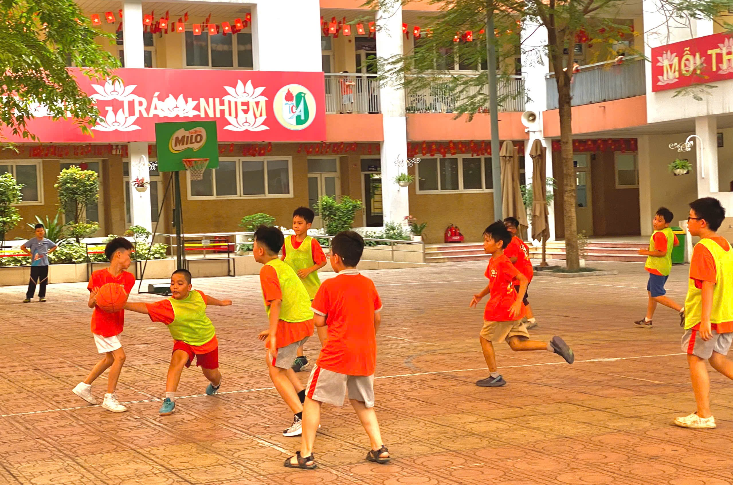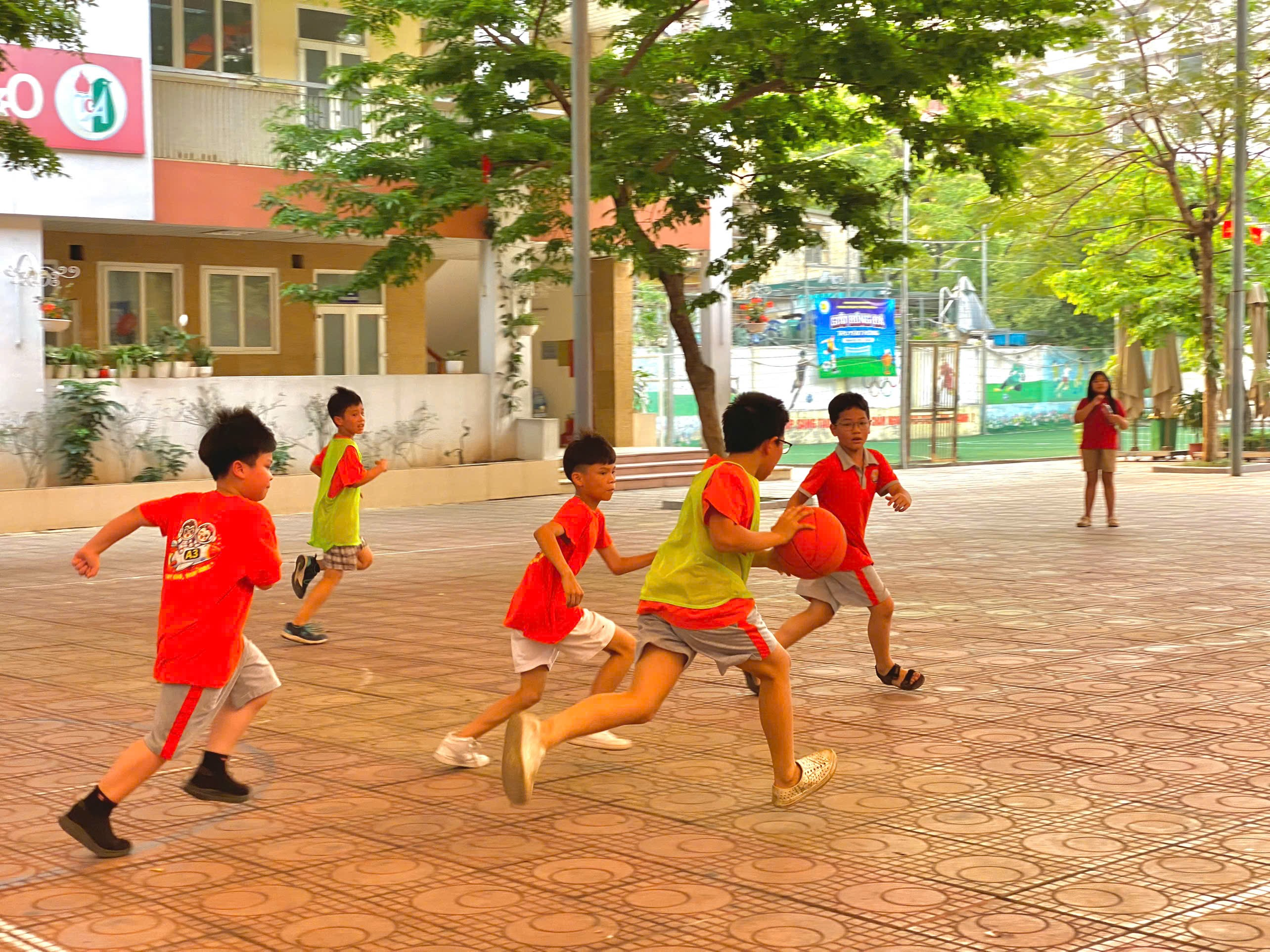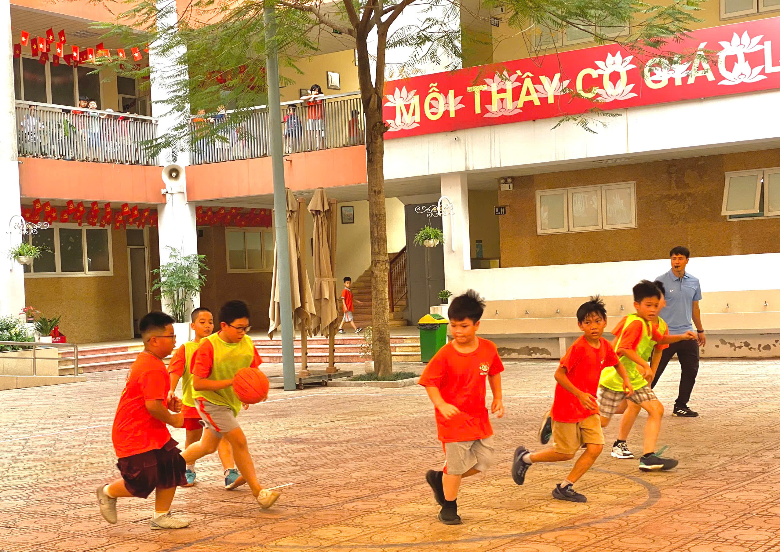 Trong khuôn khổ các hoạt động thể dục thể thao của nhà trường, trận chung kết bóng rổ nam giữa hai lớp 4A2 và 4A3 đã diễn ra trong không khí sôi nổi, hào hứng, thu hút sự cổ vũ nhiệt tình từ đông đảo thầy cô giáo và học sinh.