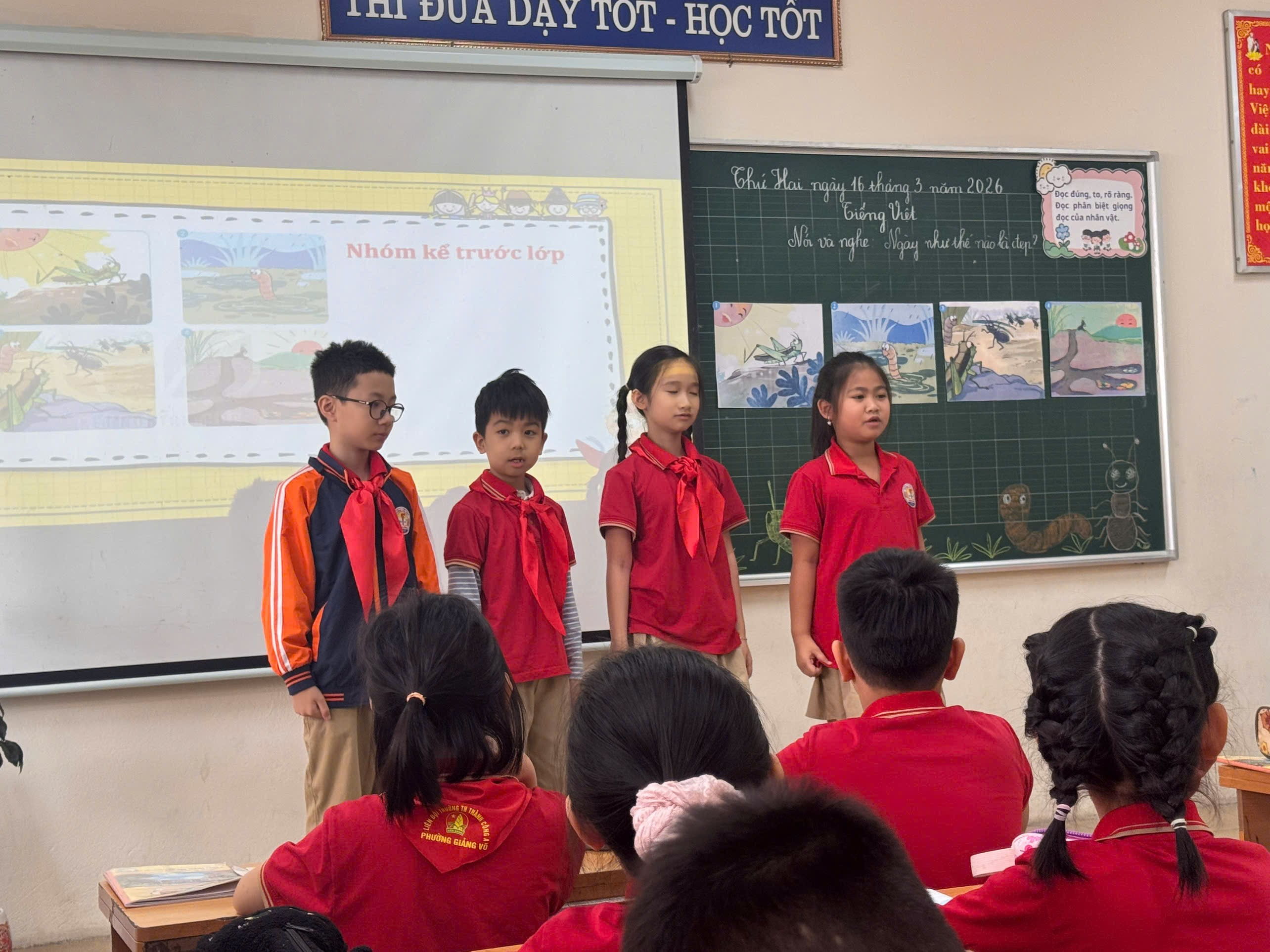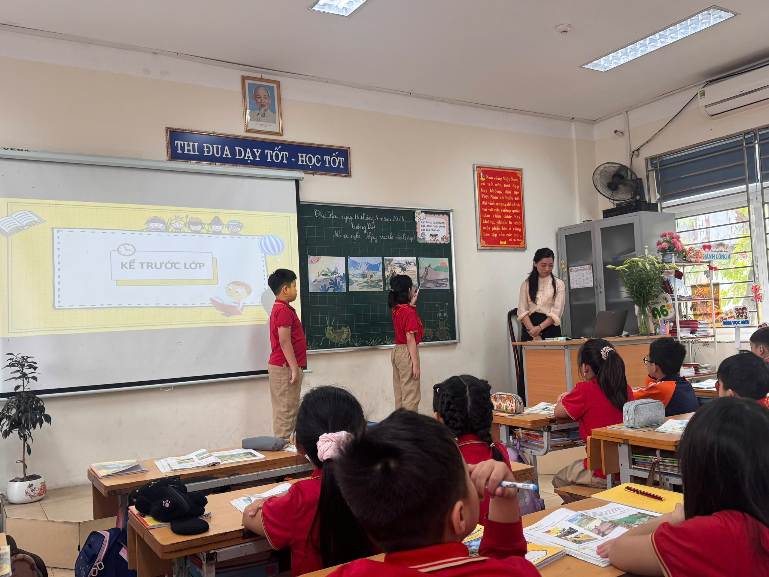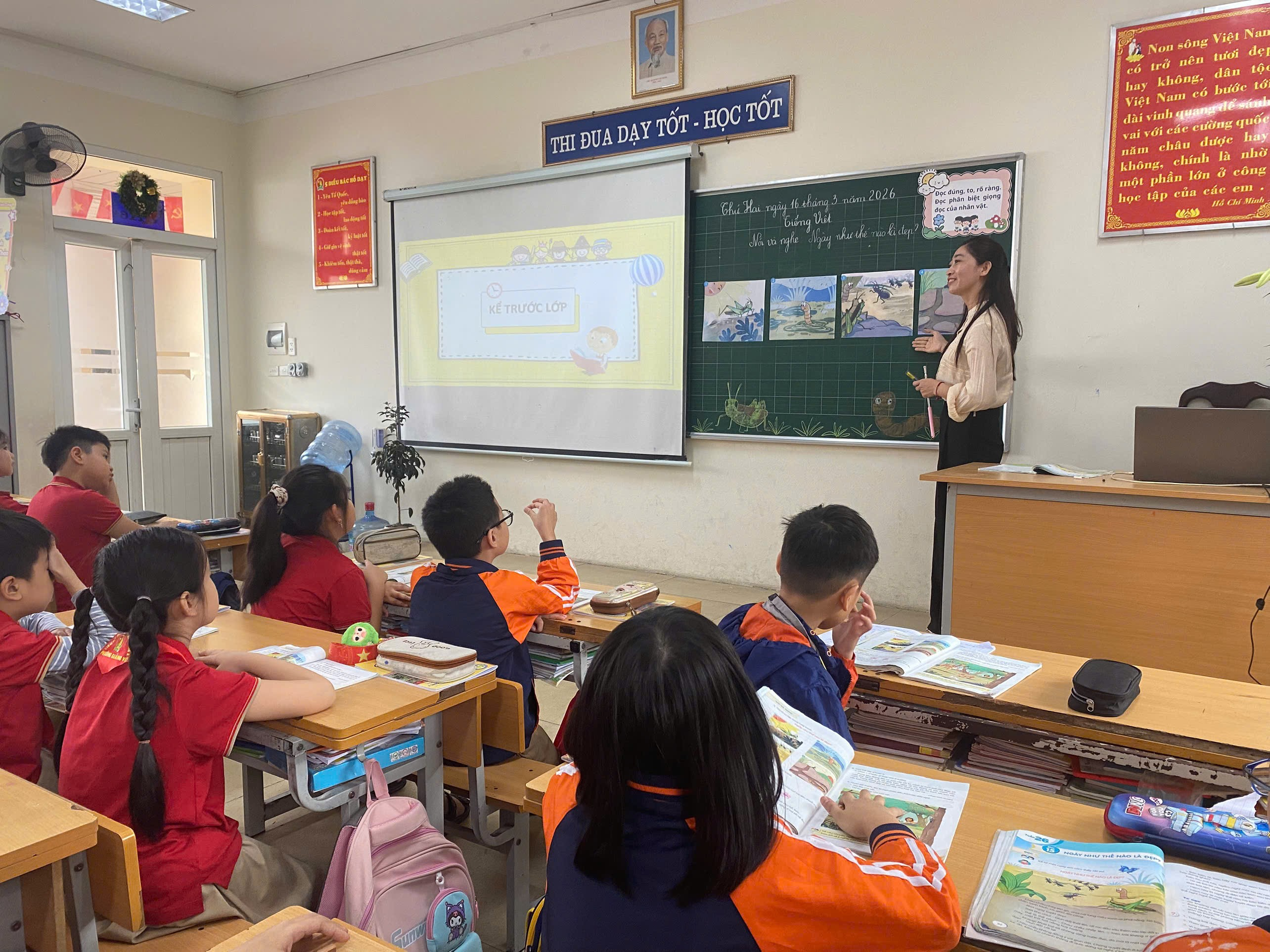 Tiếp nối là tiết Nói và nghe “Ngày như thế nào là đẹp” do cô giáo Đoàn Vân Anh – giáo viên chủ nhiệm lớp 3A6 thực hiện. Tiết học gây ấn tượng bởi không khí sôi nổi, gần gũi và giàu tính tương tác. Thông qua các tình huống gợi mở và hoạt động trao đổi, học sinh được bày tỏ suy nghĩ, chia sẻ những việc làm tốt đẹp trong cuộc sống hằng ngày. Những câu trả lời hồn nhiên, chân thành của các em đã góp phần làm sáng lên thông điệp ý nghĩa: mỗi ngày trở nên đẹp hơn từ những hành động giản dị, yêu thương.